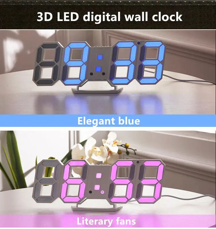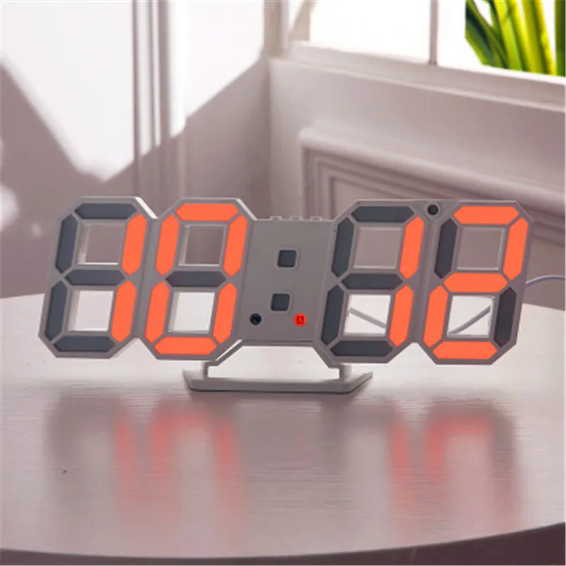 3D светодиодные цифровые настенные часы, будильник с датой и температурой, автоматическая подсветка, зеркальные настенные часы