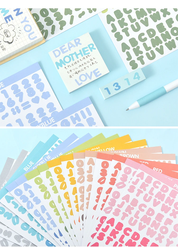 2 листа конфетных цветов, Набор наклеек с алфавитом, милое слово, н...