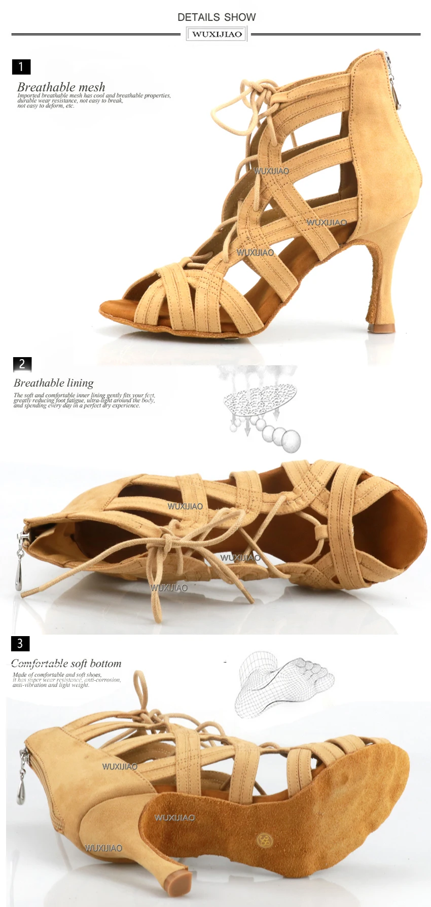 Туфли WUXIJIAO женские для латинских танцев, обувь на высоком каблу...