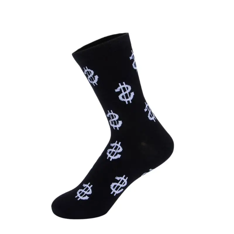Носки мужские длинные с 3d-рисунком, хлопок, забавные мультяшные, в стиле Харадзюку, деньги, доллар, весна