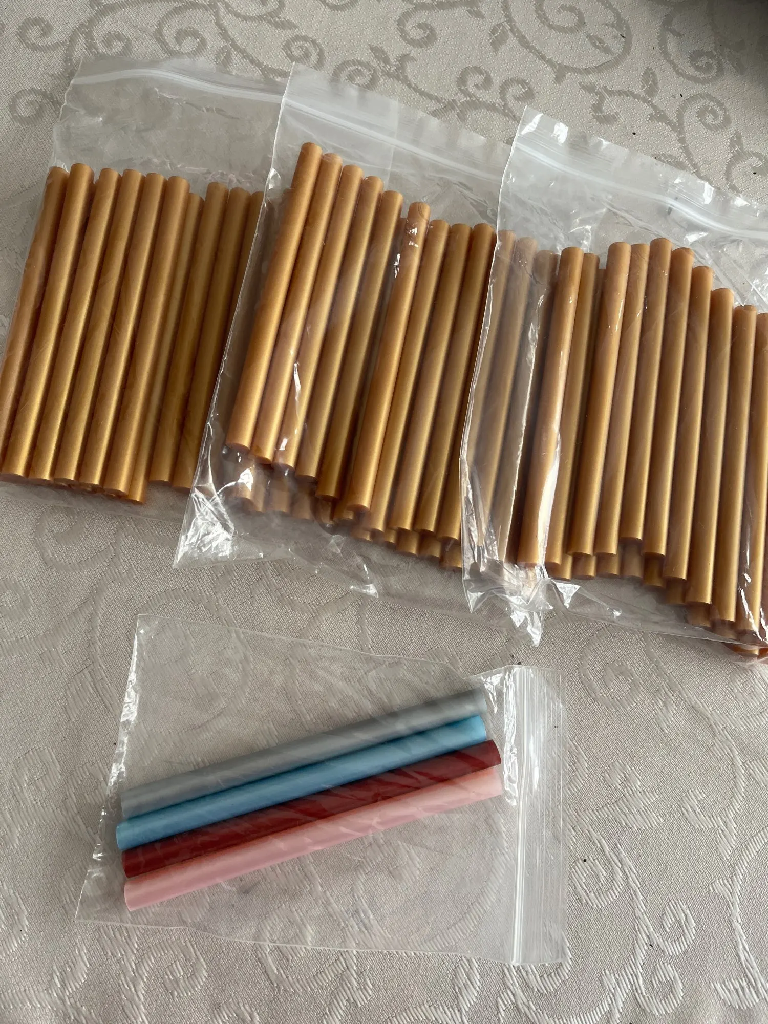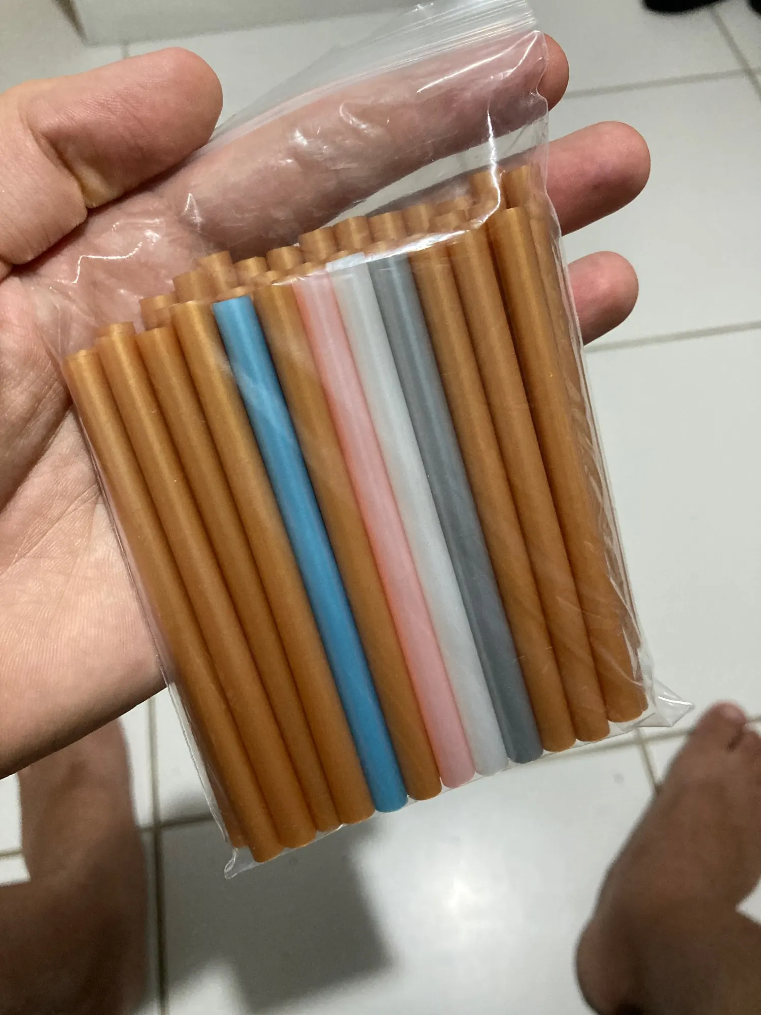 Perfectas, tal cual se describe. Llegaron rápido y son perfectas para su uso con pistolas de silicona, acabado muy bonito. Y nos enviaron un regalito de barras en otros tonos y todos preciosos. Gracias, repetiremos seguro la compra.