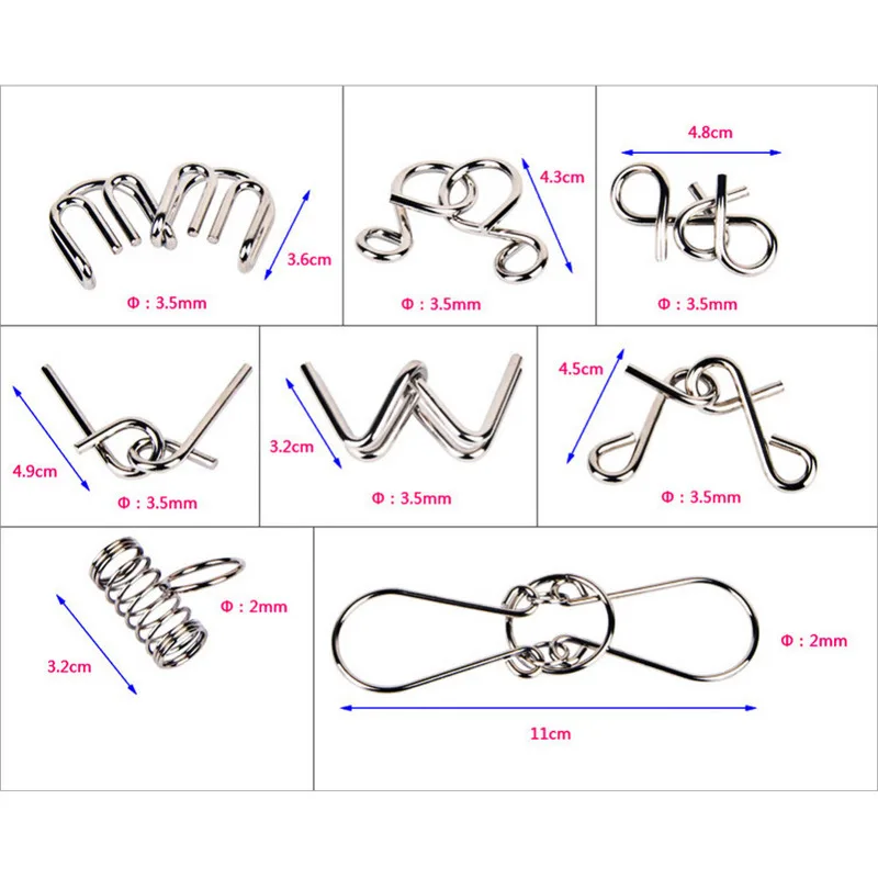 Материалы Монтессори 8 шт.компл. металлическая проволока головоломка Iq Mind головоломка игра для взрослых и детей 2 стиля