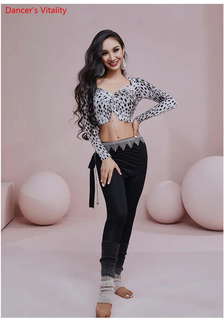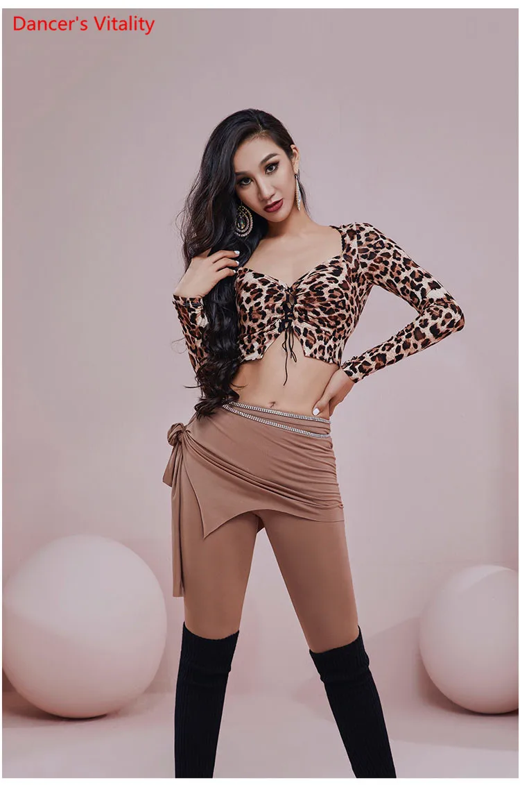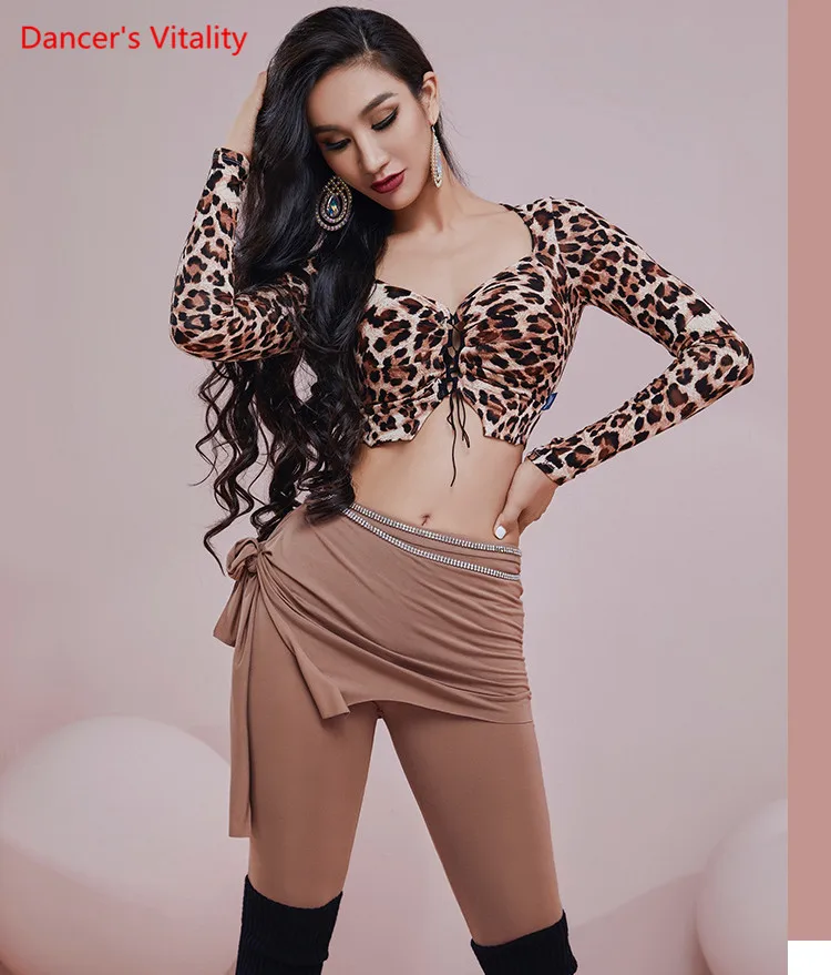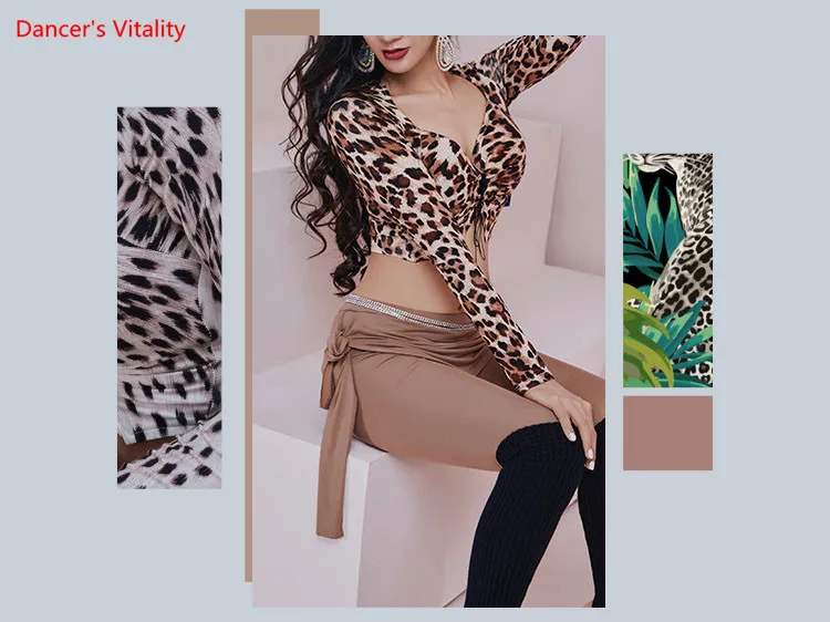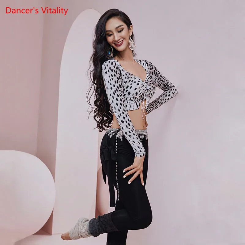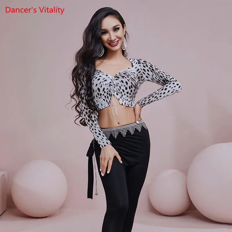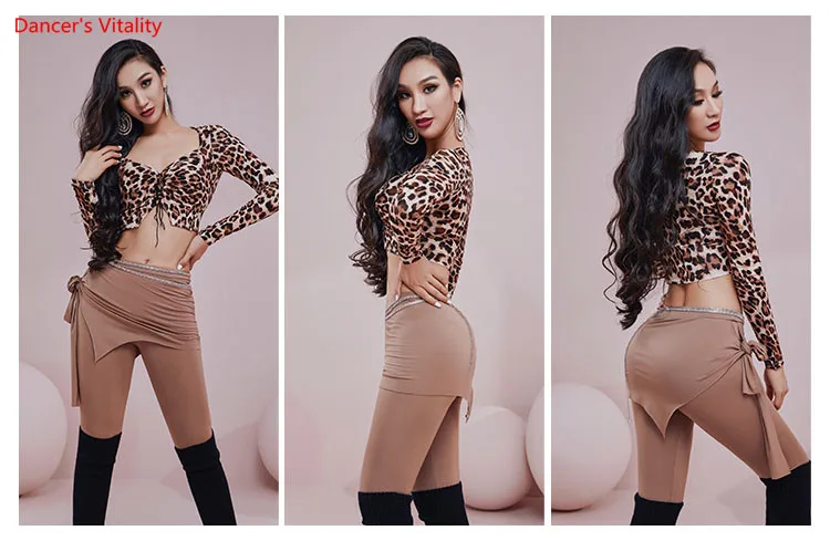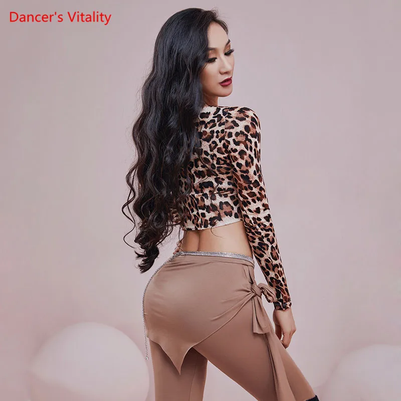 Топ или штаны для танца живота, рубашка с леопардовым принтом, брюки с длинным рукавом, одежда для выступлений, женская элегантная одежда для соревнований