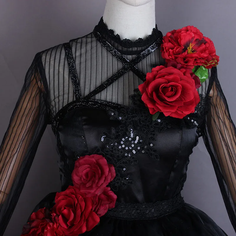 Материал:Темно-полосатая пряжа, кристальная пряжа, атласное платье, пайетки, кружево, толстый черный шелк
