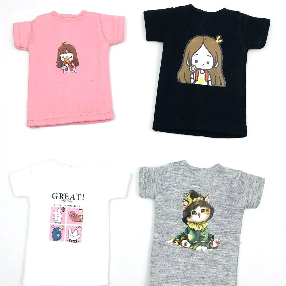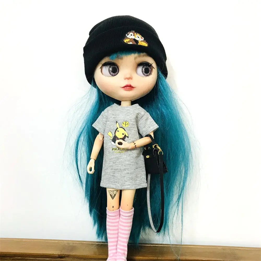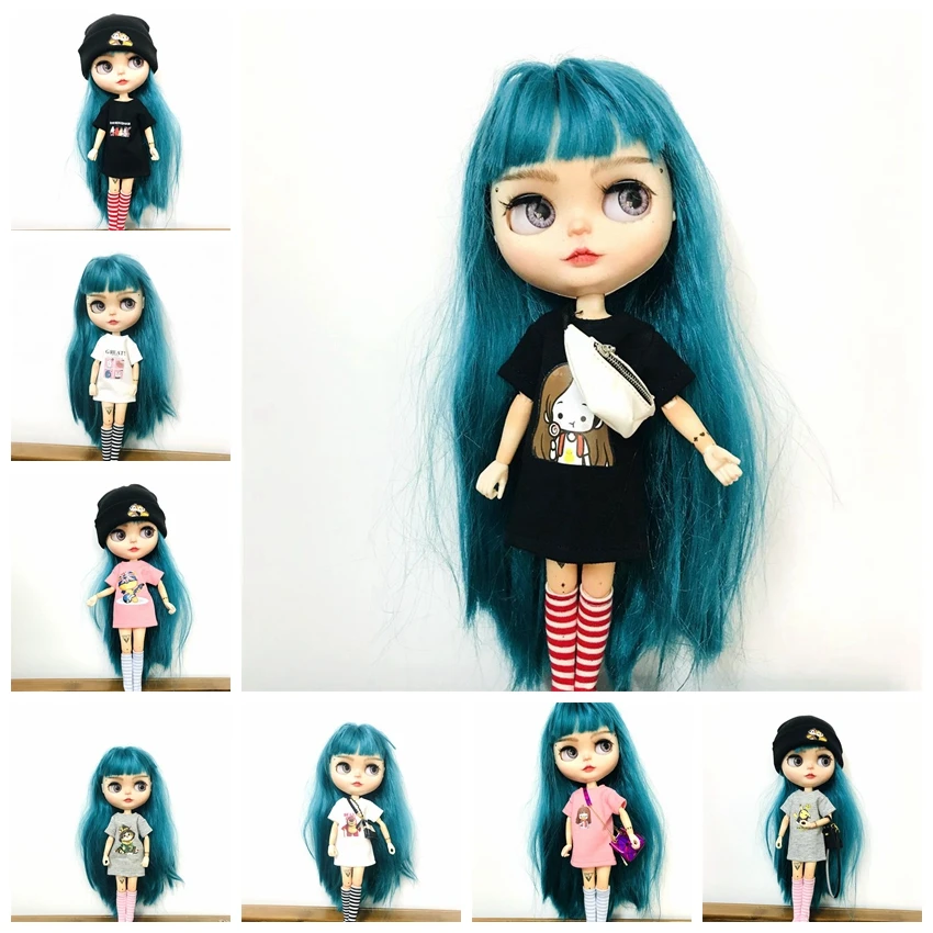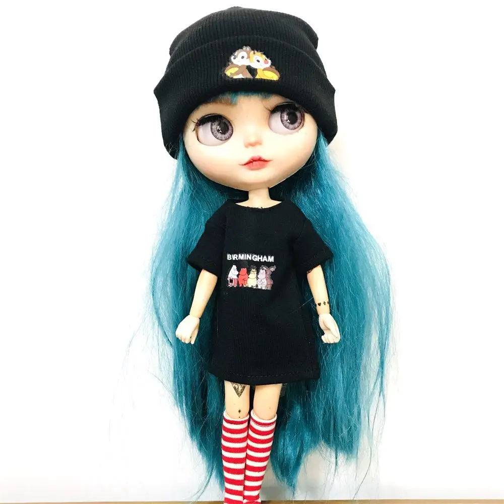 2 шт.компл. Новинка стильная рубашка Blyth с милыми рисунками из мультфильмов короткая футболка + носки до колена в полоску для кукол Licca Momoko 16 аксессуары