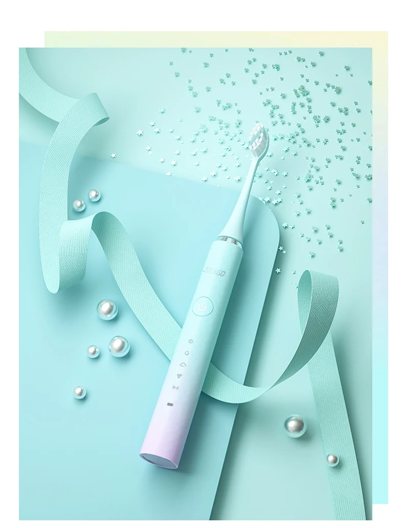 Звуковая электрическая зубная щетка Seago S2, акустическая Электронная зубная щетка для гигиены полости рта, зубная щетка с 3 головками, 40000 об/мин, 5 режимов, зарядка через USB