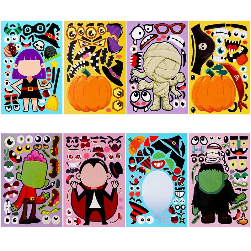 4 шт. детские наклейки сделай сам, Сделай своими руками, сделай свою собственную пинетку, игра на Хэллоуин вечерние, сборные наклейки, лист, Детский пазл, развивающие игрушки