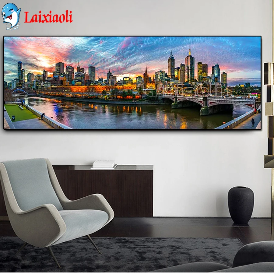 Полная квадратная круглая 5D картина «сделай сам», Мельбурн, городское здание, вышивка пейзажа, вышивка крестиком, мозаика, большой домашний декор