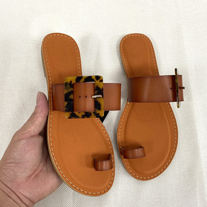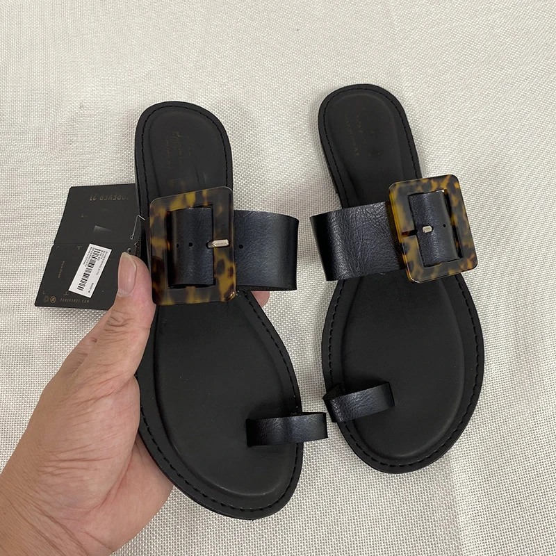 Новые сандалии женская летняя обувь на плоской подошве; Летние босоножки для пляжа; Летние туфли на плоской подошве с шлепанцы без задника с открытыми пальцами с квадратной пряжкой; Модные женские уличные женская обувь, Тапочки