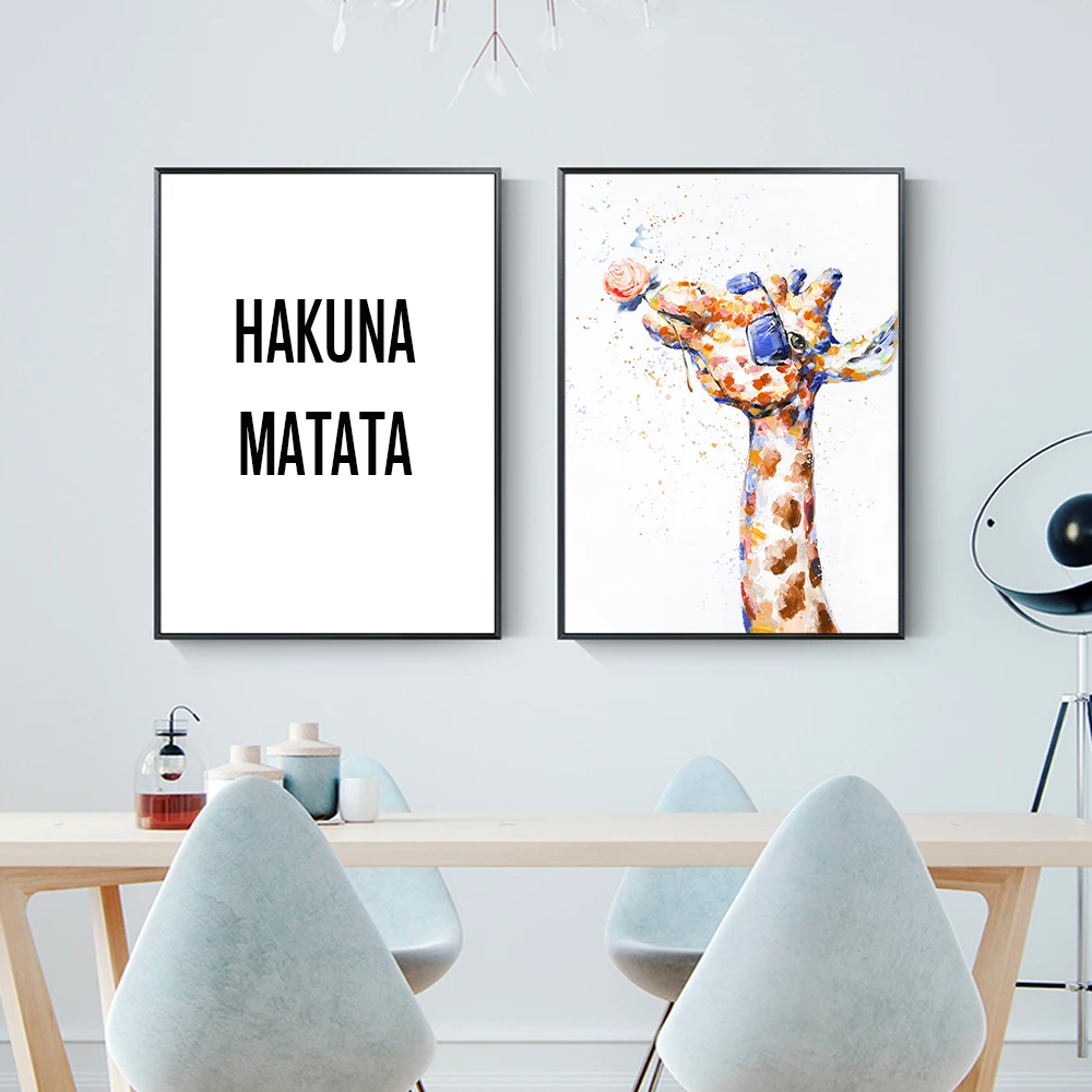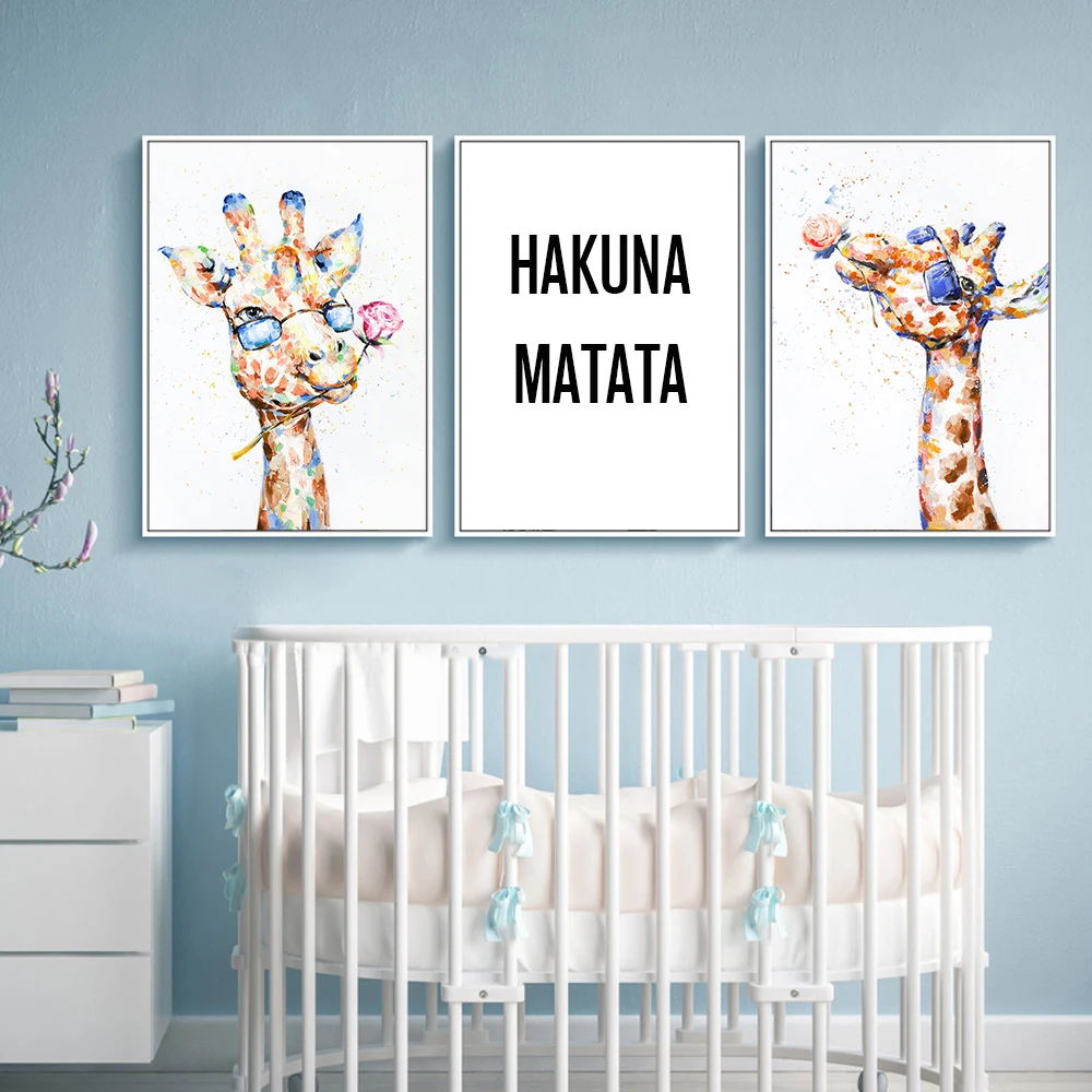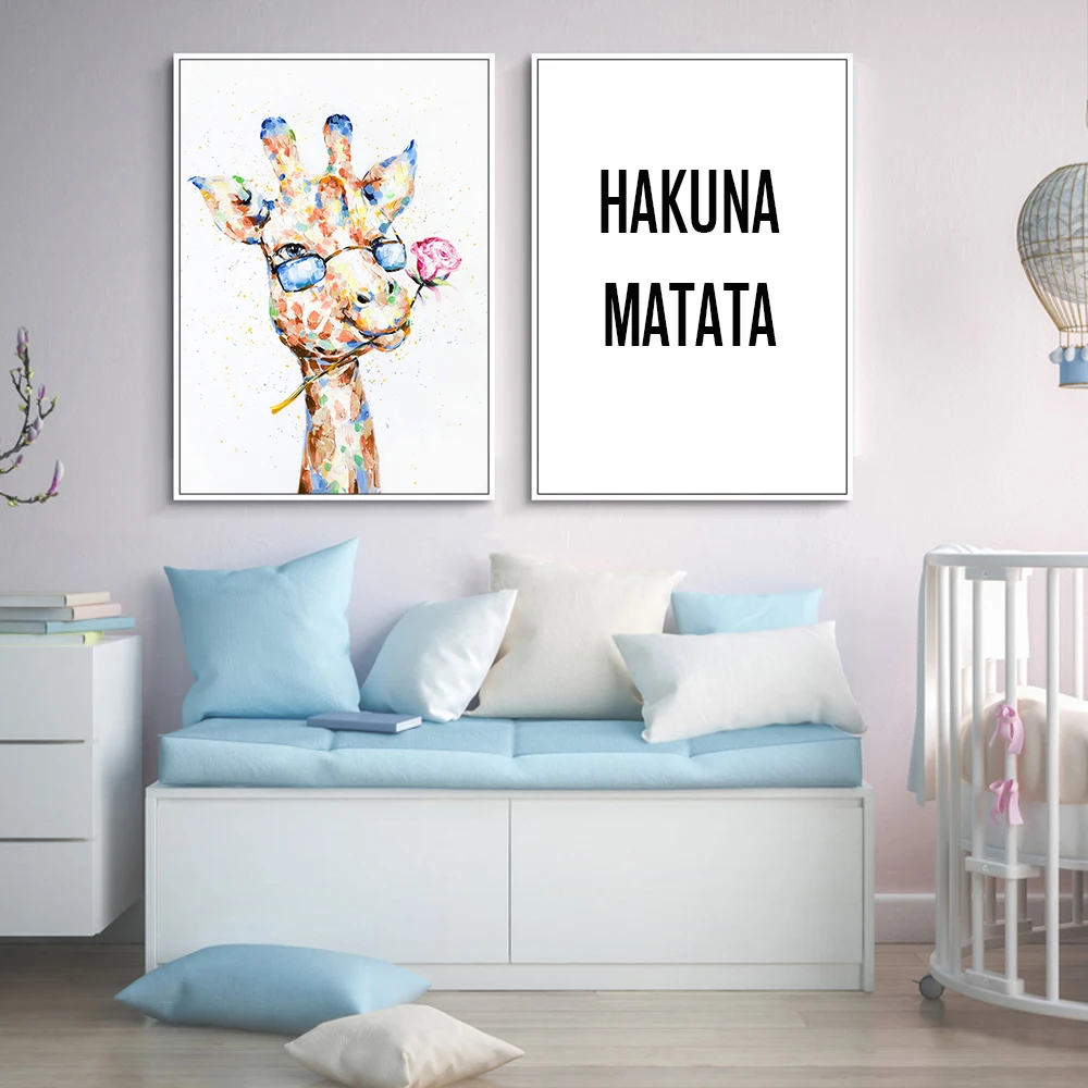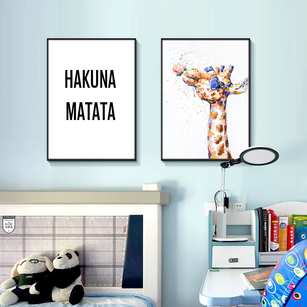 Детская Настенная картина холст принт животное картина жираф семейная Скандинавская живопись для детей украшение для спальни HAKUNA MATATA