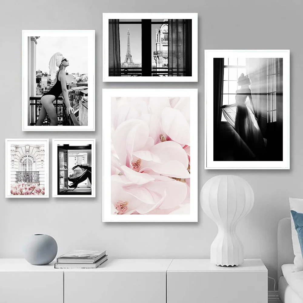 Современная мода девушка скандинавский розовый цветок стильное настенное искусство холст живопись плакаты и принты Черный Белый для гостиной украшение для дома icon star icon star icon star icon star icon star