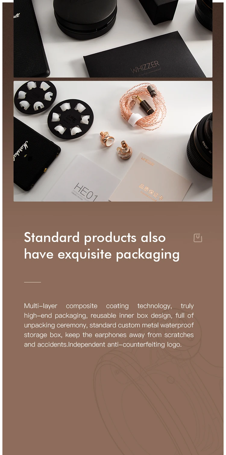 Этот A-HE01 Whizzer-это красота на сцене IEM. Не только красота в внешнем виде, но и перформер. Я действительно не знаю, чего ожидать, но звук потрясающий. Я или лучше был жестяным HiFi T2 Plus ежедневным драйвером, но переходил к этому Whizzer A-HE01. Попробуйте, и вам понравится. Также презентационная коробка потрясающая Whizzer включилась в подробности во всех направлениях Я действительно впечатлен