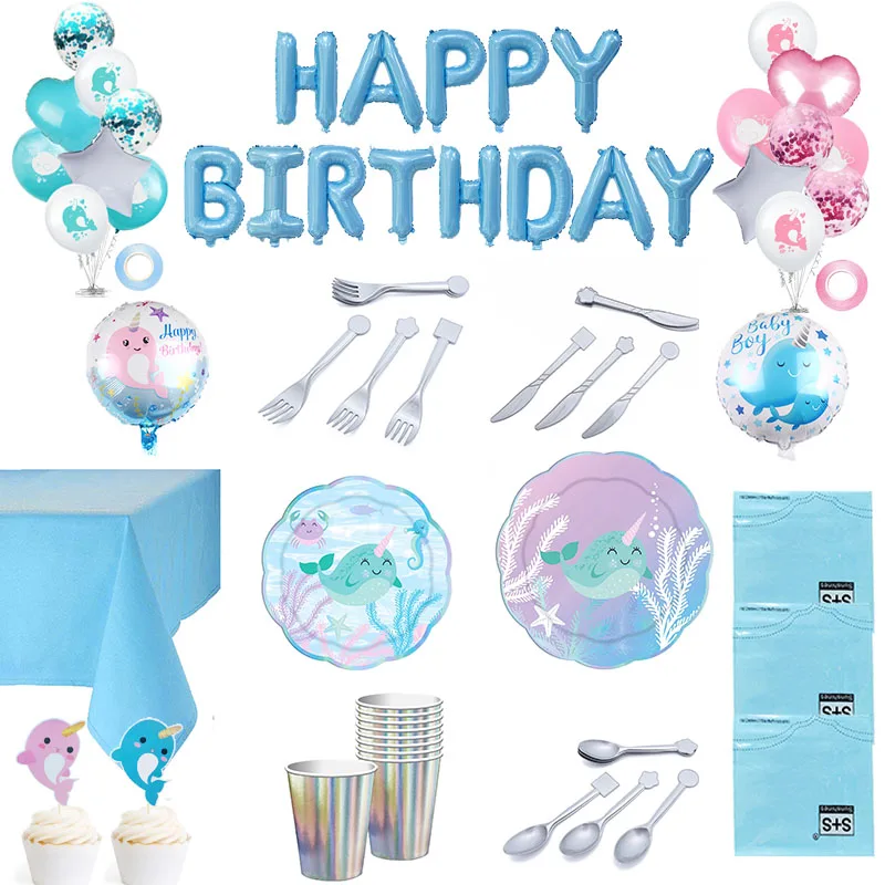 Милая тематическая одноразовая посуда с океаническим Китом, бумажные тарелки и стаканы для детской вечеринки на день рождения, украшения для детского душа