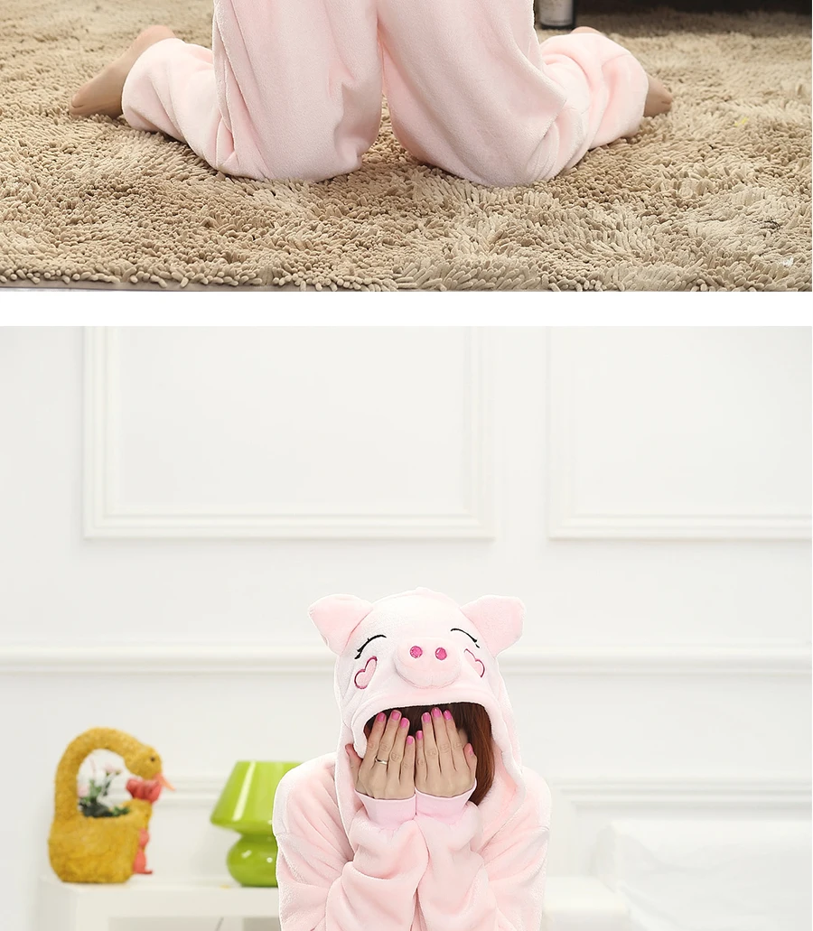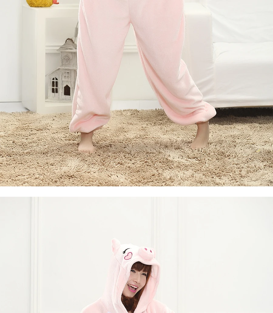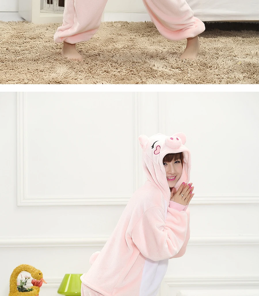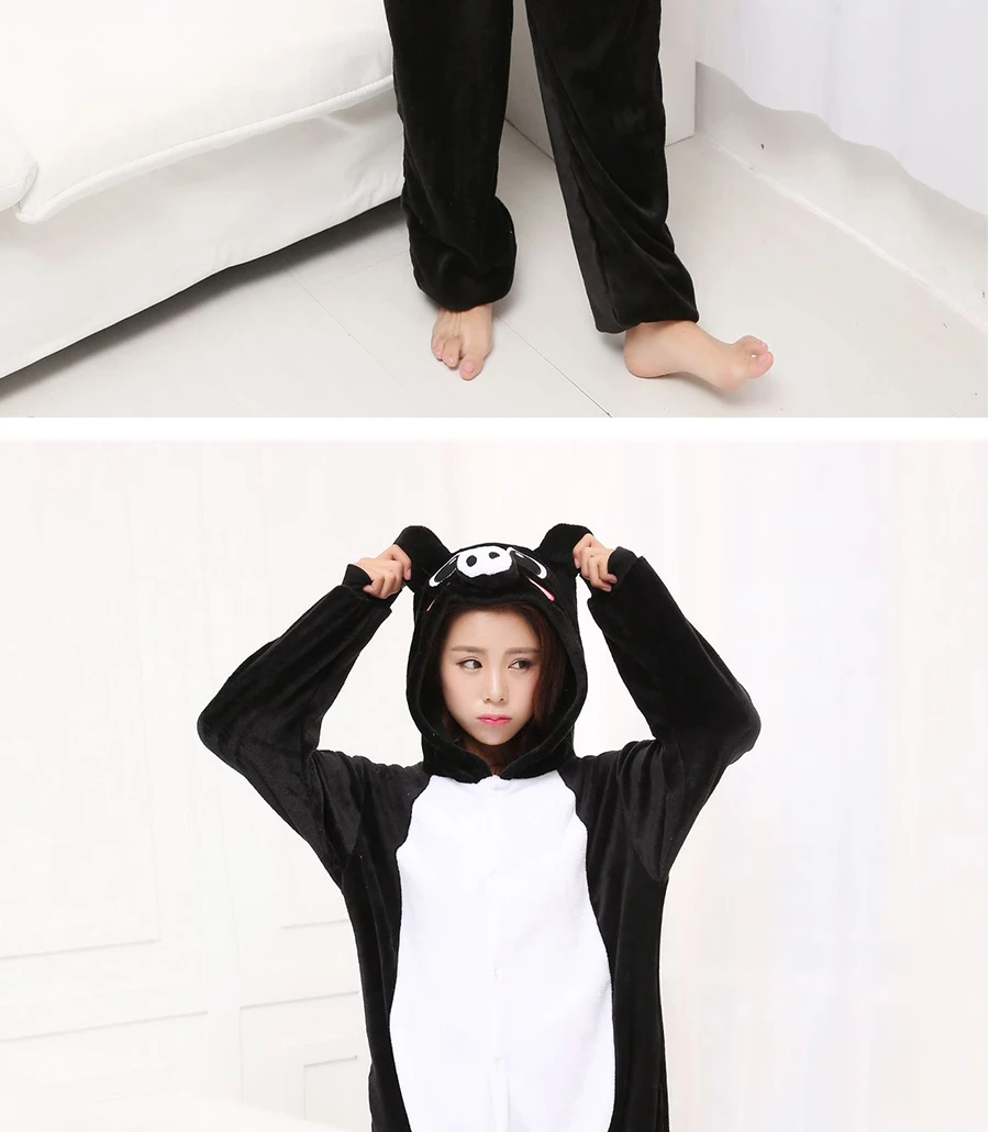 Зимние кигуруми пикантные женские комбинезоны розовая свинка фланелевые новые Мультяшные животные цельные пижамы с длинным рукавом мужские черные свиньи Косплей Ститч