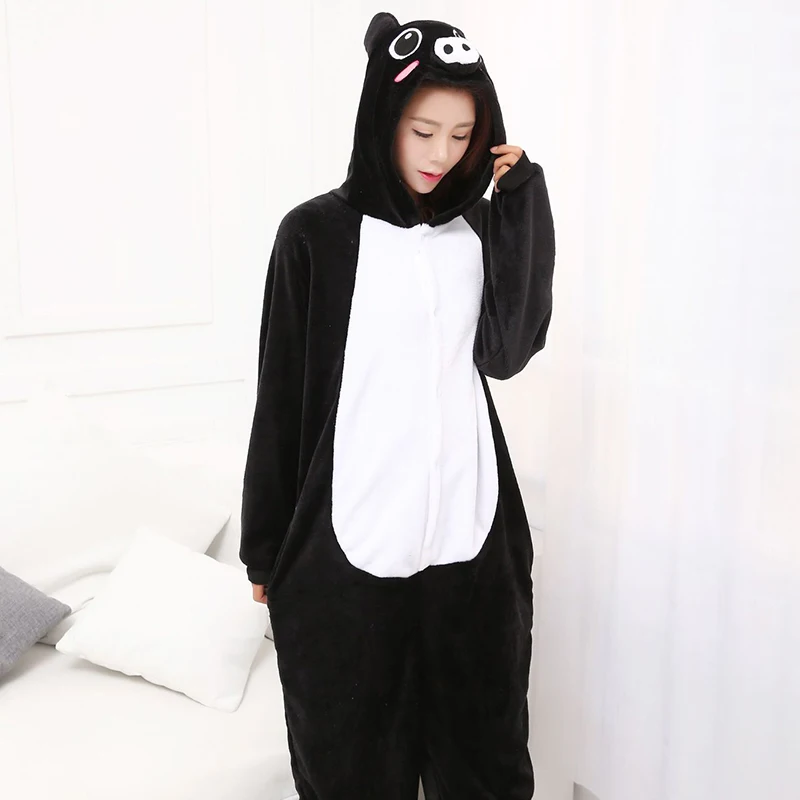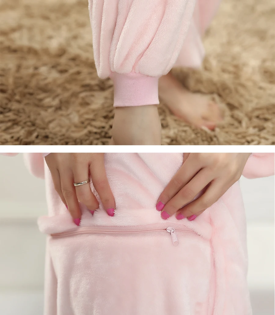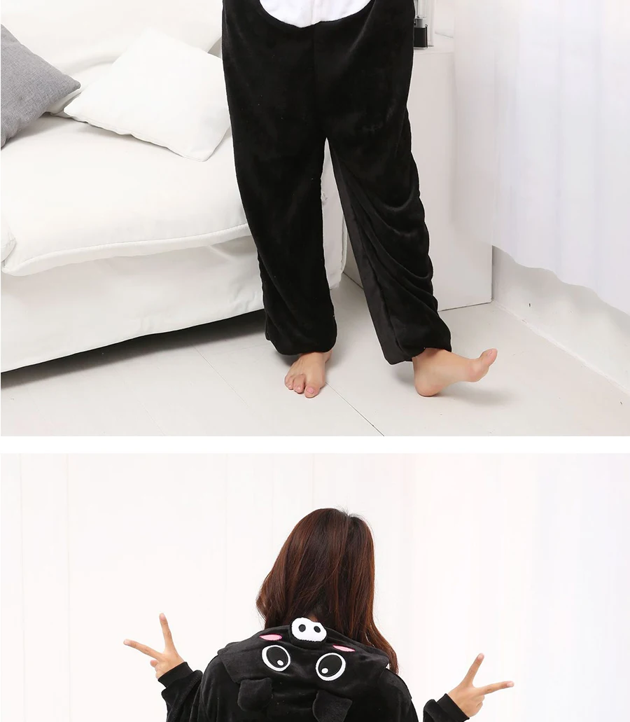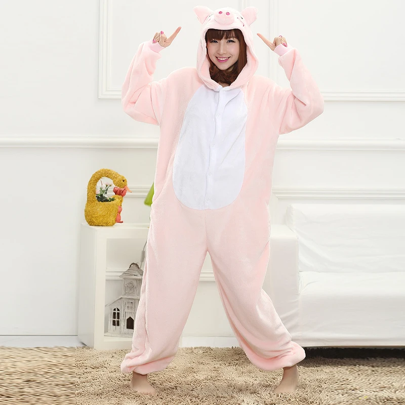 Зимние кигуруми пикантные женские комбинезоны розовая свинка фланелевые новые Мультяшные животные цельные пижамы с длинным рукавом мужские черные свиньи Косплей Ститч