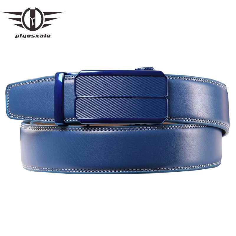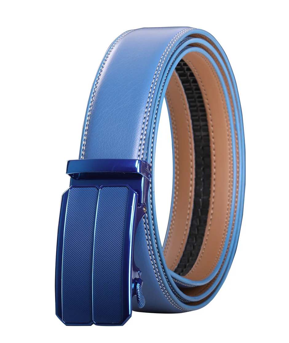 Ремень B338 мужской из натуральной воловьей кожи, роскошный пояс с автоматической пряжкой, Коричневый Синий, 2021