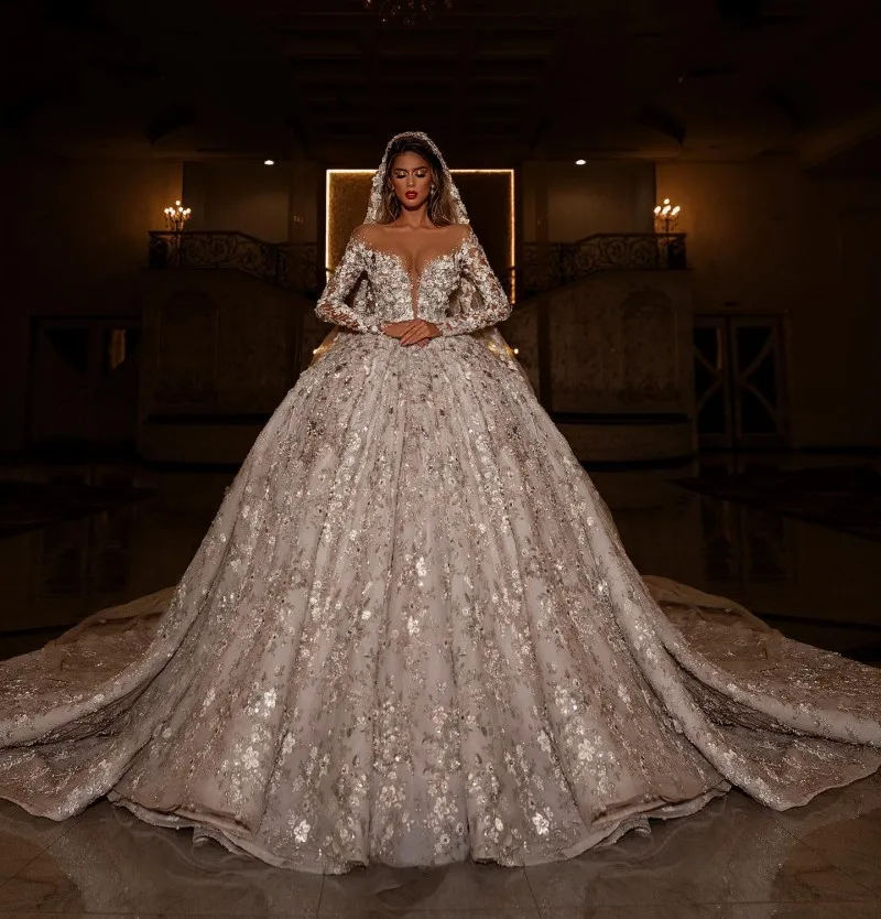 Элегантные вечерние платья с длинным рукавом, бальное платье с буси...