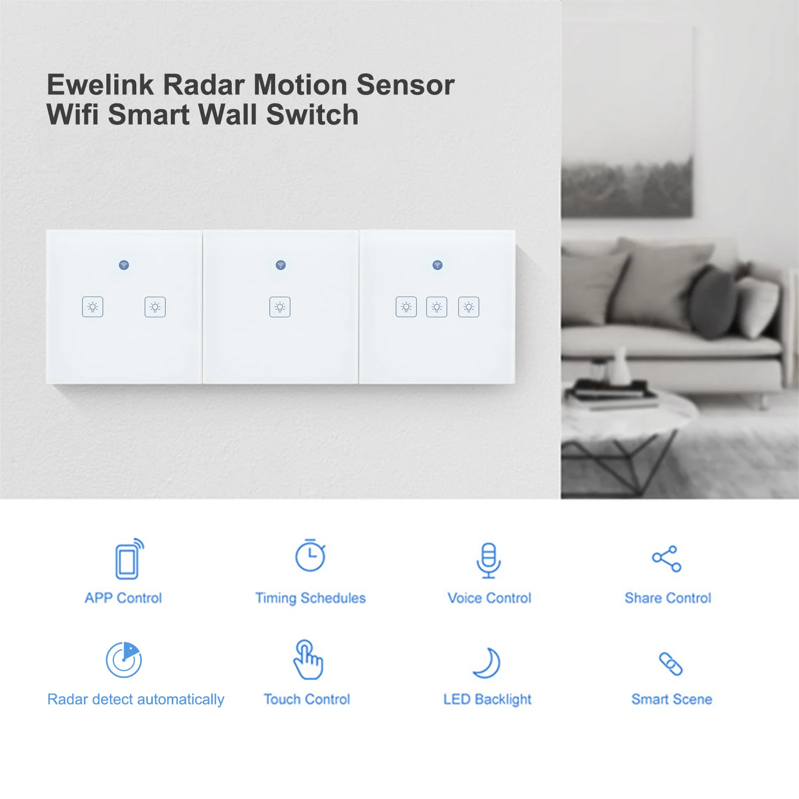 Ewelink радар Датчик движения Wifi умный настенный выключатель для IFTTT/Alexa/Google Home/Apple Siri Голосовое управление приложение/сенсорный контроль таймер