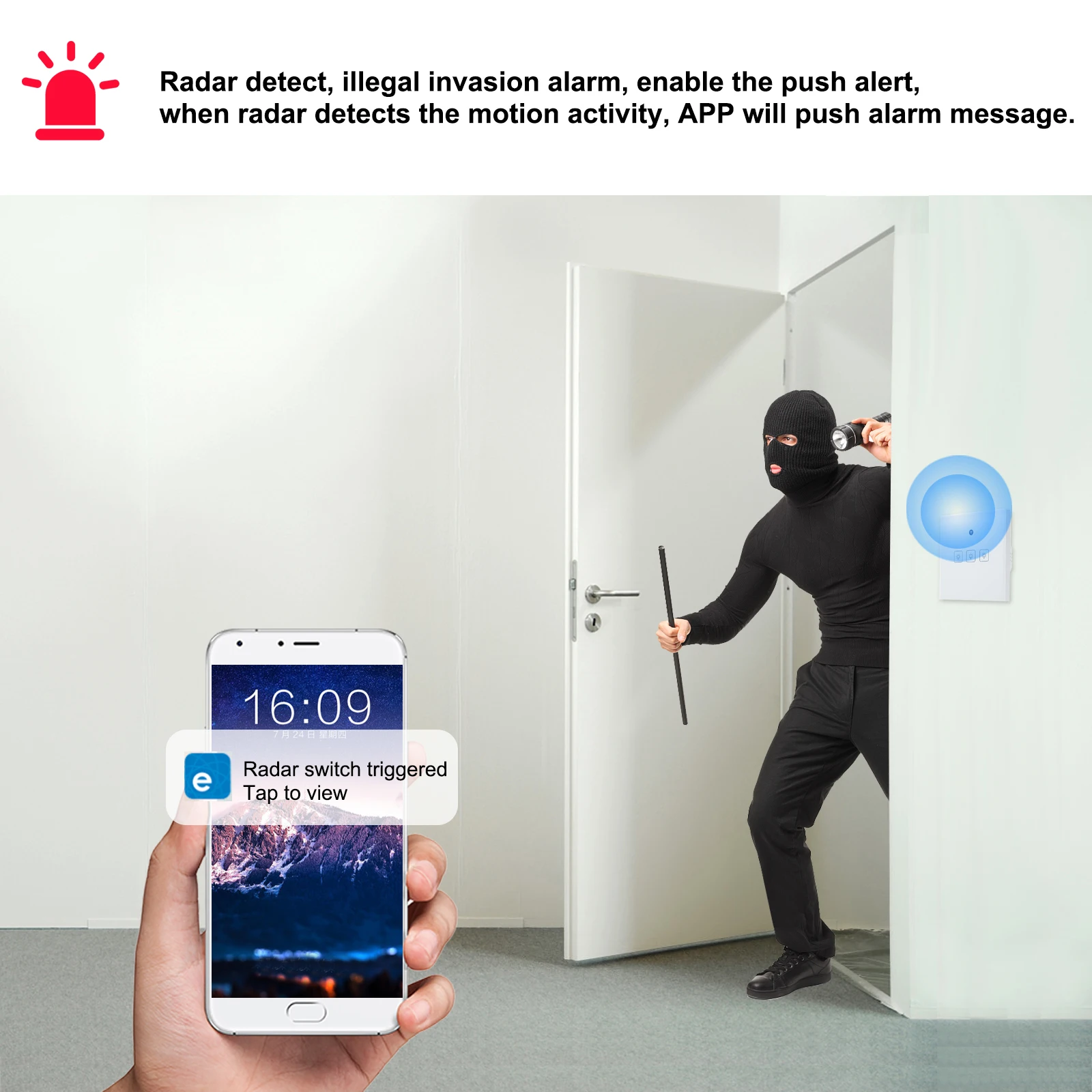 Умный настенный Wi-Fi датчик движения Ewelink, Радар для IFTTTAlexaGoogle HomeApple Siri с голосовым управлением, таймером и сенсорным управлением