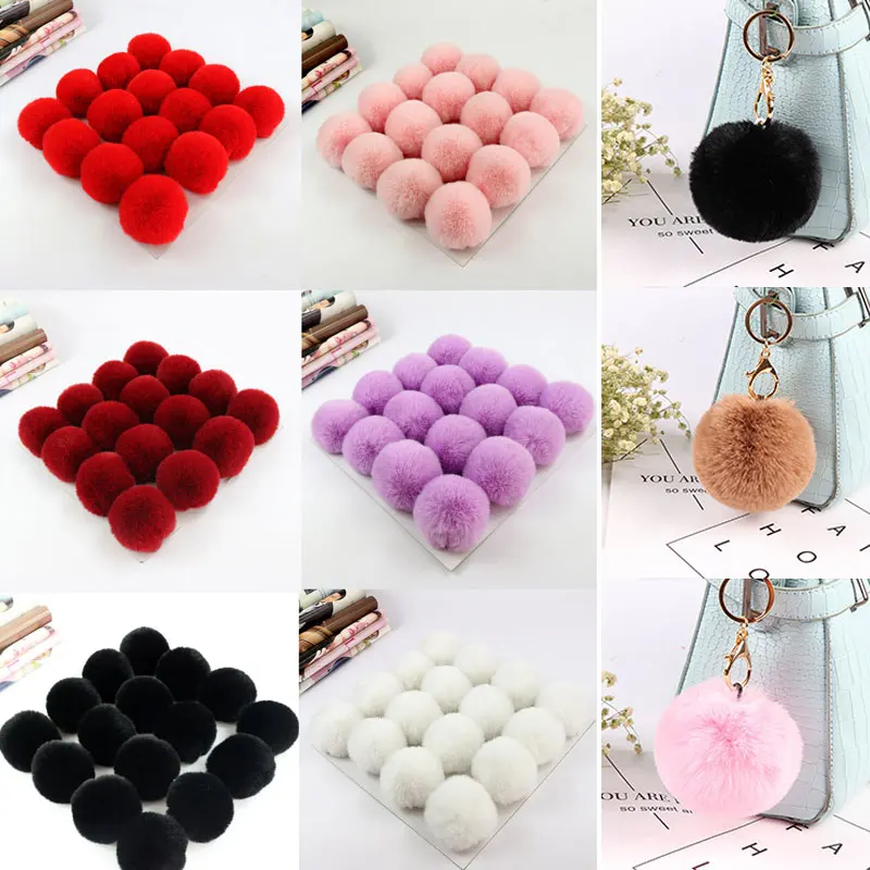 Помпон из искусственного кроличьего меха 8 см, помпон с шариком, 15 видов цветов для брелока, шляпы, сумки, аксессуары для Подвеска для изготовления сделай сам, 1 шт.