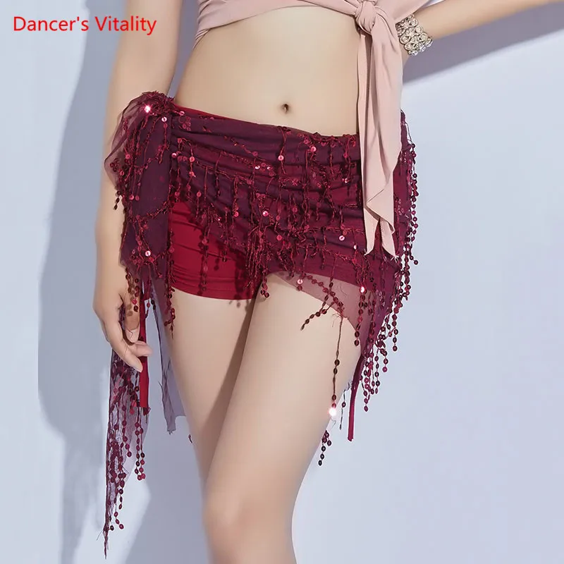 Юбка женская для танца живота, одежда с блестками, элегантный тренировочный пояс с треугольниками для выступлений и тренировок
