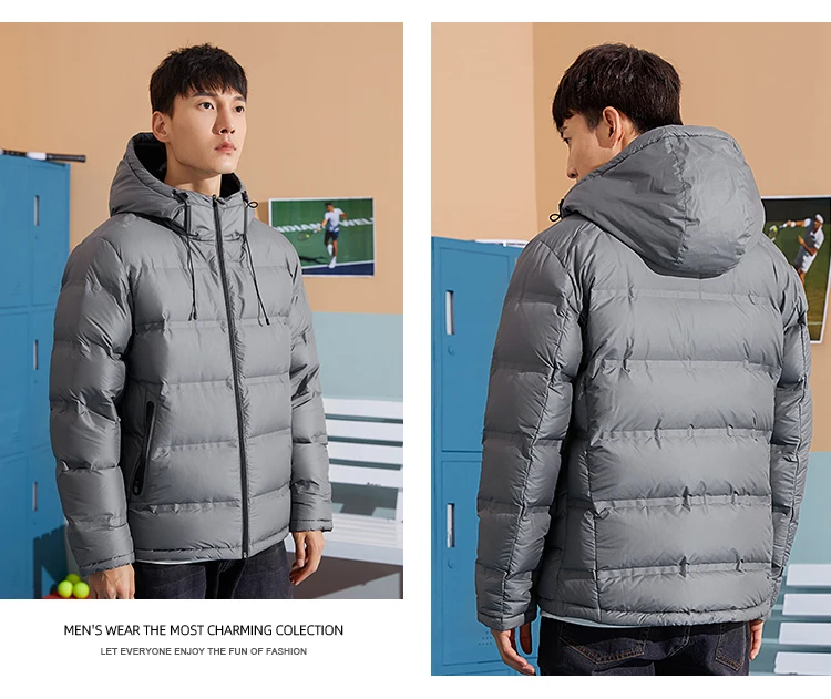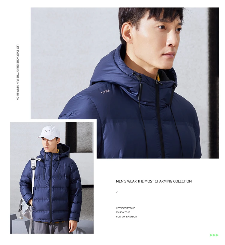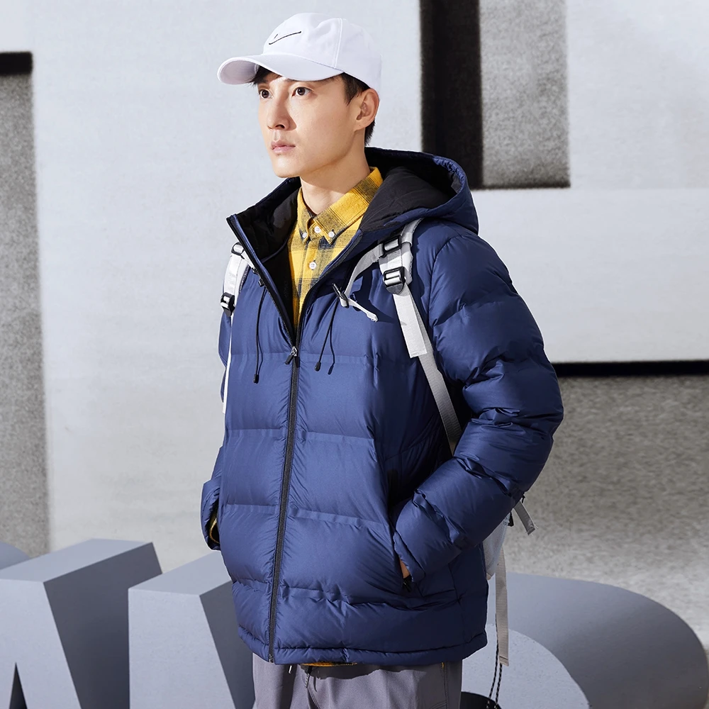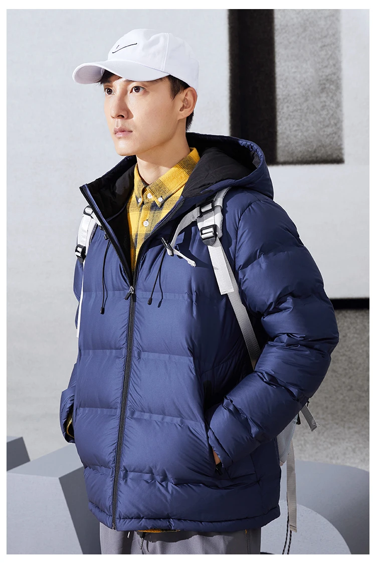 Куртка мужская зимняя на 90% утином пуху, ветрозащитная, с капюшоном, 2020