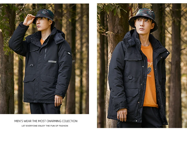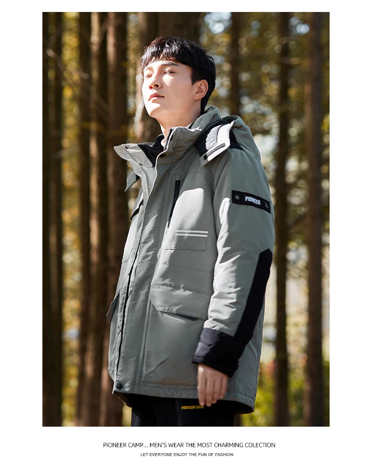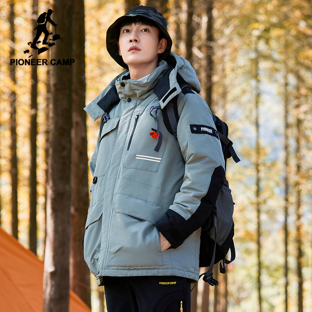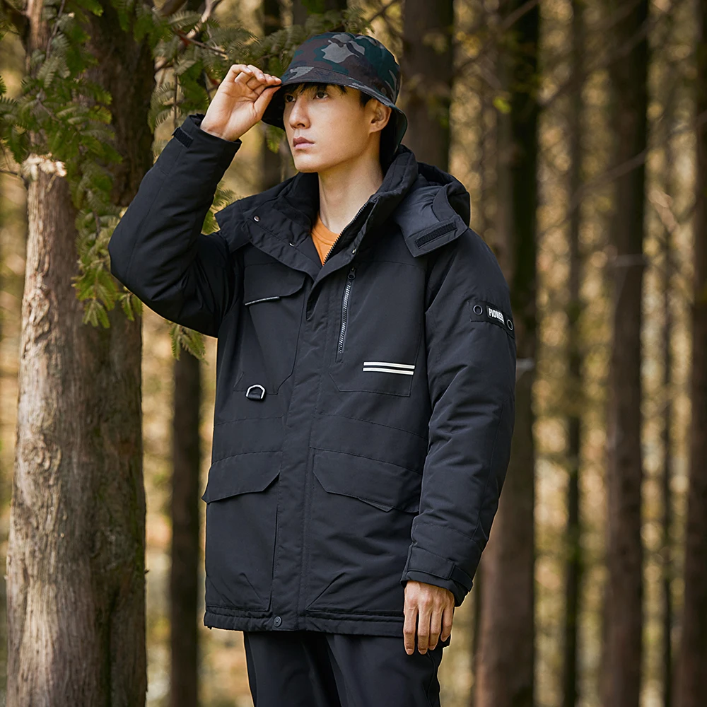 Пионерский лагерь, зимние длинные пуховики для мужчин, толстые теплые ветрозащитные пальто с капюшоном, черные, зеленые, Карго, мужская одежда айр01031002