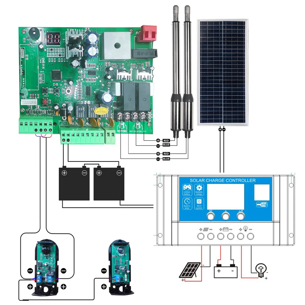 Автоматический набор для открывания ворот с Панели солнечные под среднюю нагрузку на солнечных батареях Dual устройство привода ворот для открывание двойных распашных ворот Поддержка резервного копирования Батарея