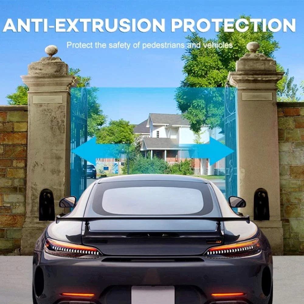 Сама система имеет функцию восстановления удара. Для более безопасной защиты, некоторые пользователи могут быть добавлены датчик фотоэлементов. Для наружных ворот. Когда ворота закрываются, Разрежьте ИК или ребенок проходит через закрывающие ворота, ворота будут открыты.