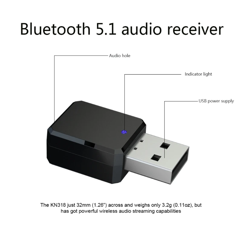 1 шт. KN318 Bluetooth 5,1 аудио приемник Выход AUX USB обоих концах...