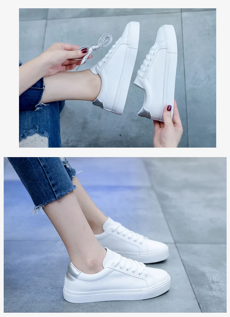 Кроссовки женские из ПУ кожи, Вулканизированная подошва, Классическая однотонная повседневная обувь, белые, весна