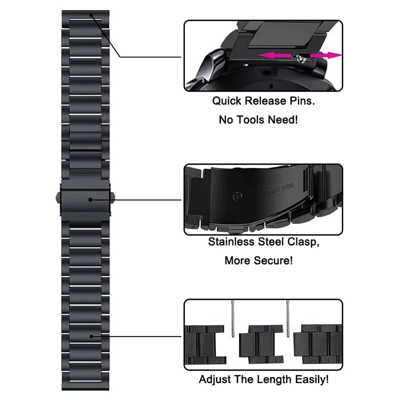 Ремешок из нержавеющей стали для Samsung Galaxy Watch Active 2, 3, ...