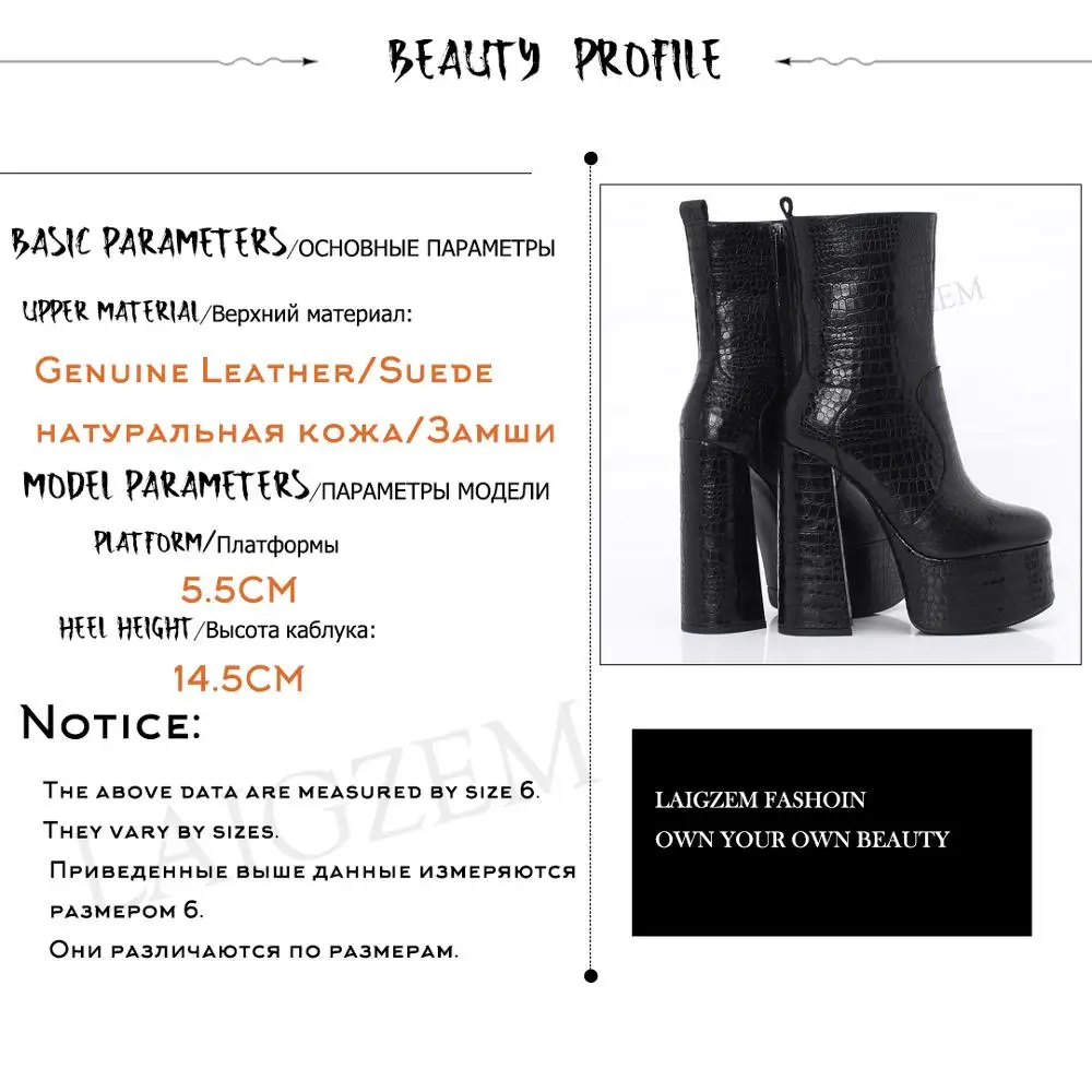 LAIGZEM/очень женские ботинки на платформе; Полусапожки из натуральной кожи на массивном высоком каблуке; Обувь для увеличения роста; Женская обувь; Размеры 33, 41