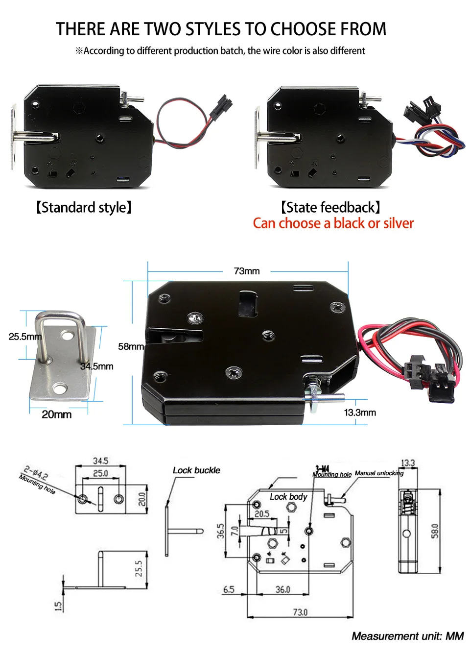 Электрический замок в основном используется из углеродистой стали для внутреннего материала. Прочный и безопасный в использовании. Безопасность: защелкивающийся крючок может выдерживать тягу 150 кг, не будет очевидным постоянное деформация, ударопрочный, анти-посторонний. Компактный, простой в установке, без левого, правого, переднего, обратного бокового ограничения, и позволяет механическое положение разблокировки ресниц. Само эластичный дизайн: эластичность регулируется, подходит для веса 0,5 ~ 4 кг двери. Применение: шкафчики для доставки, Холодильный шкаф, почта или ящик для газет, шкафчик для самостоятельного обслуживания, книжный счетчик, шкаф для переодевания и т. д.