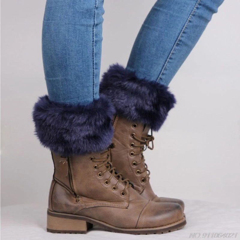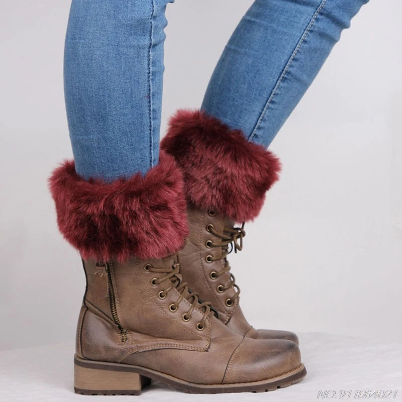 Женские зимние теплые вязаные крючком гетры с меховой отделкой манжеты носки для обуви N11 20 Прямая поставка