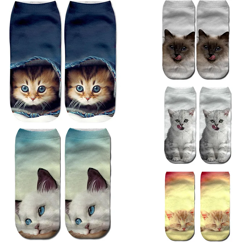 Новинка, стильные модные короткие носки с 3D рисунком кота, животных, тысяч рисунков, смешные осенние женские носки до щиколотки в стиле Харадзюку