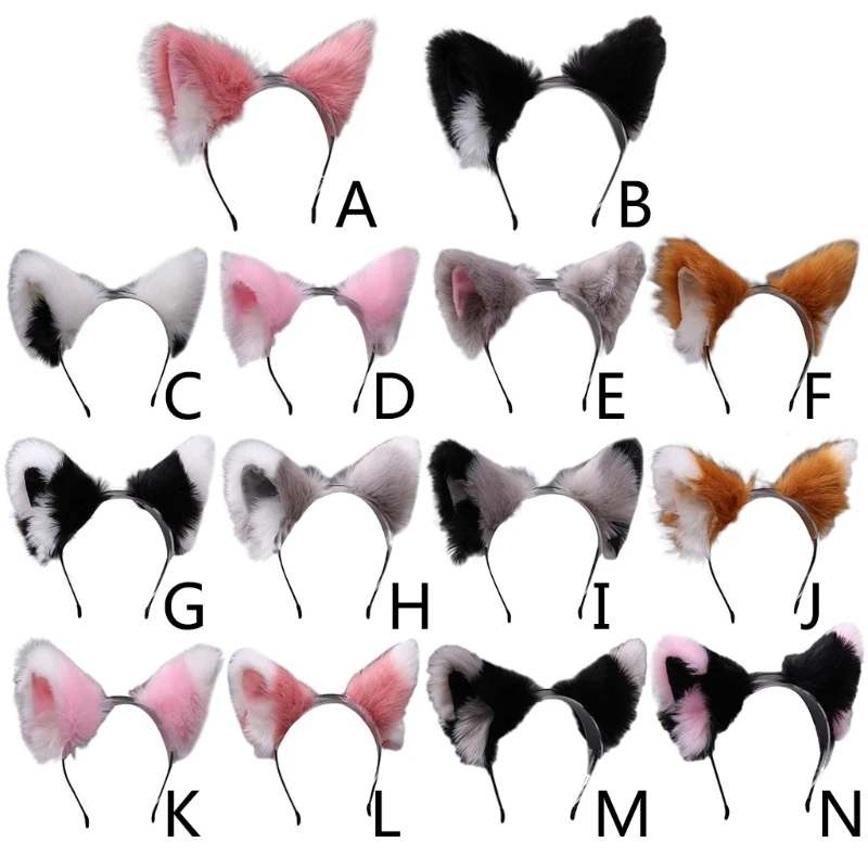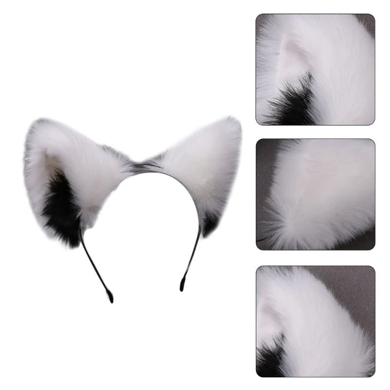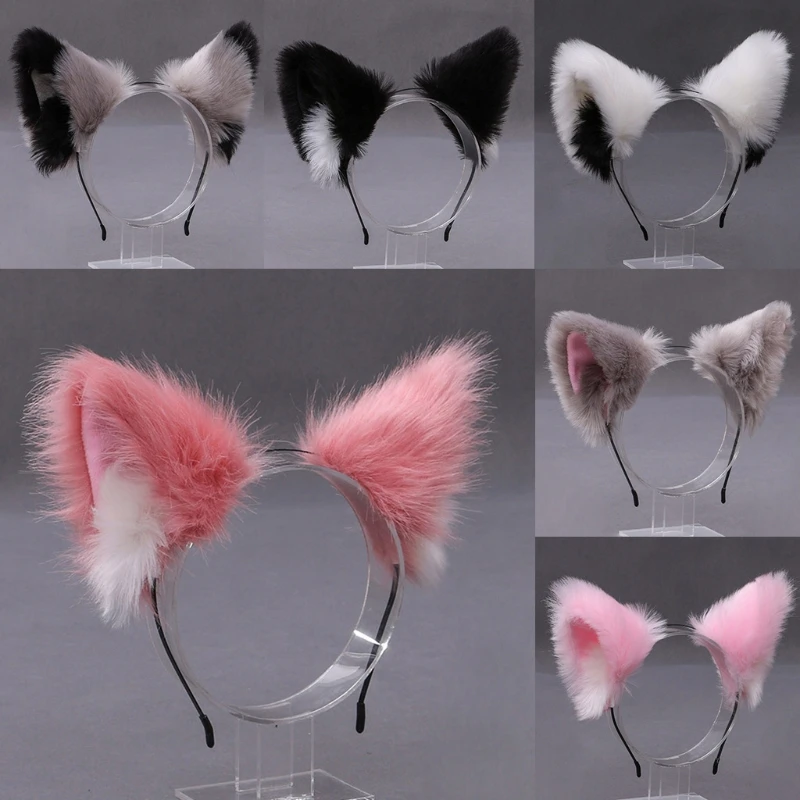 Женская длинная пушистая повязка на голову с кошачьими ушками