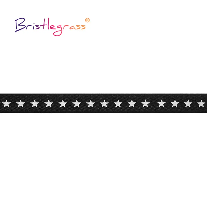BRISTLEGRASS 2 5 10 ярдов 5/8 "15 мм белый Принт со звездой сгибается над эластичным врагом спандекс атласная лента повязка для волос платье с повязкой швейная отделка