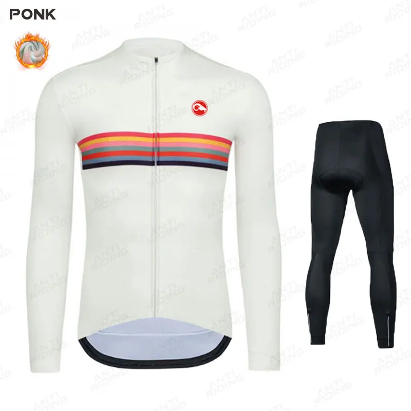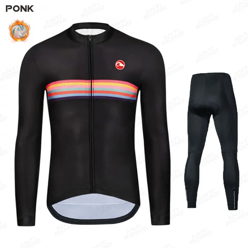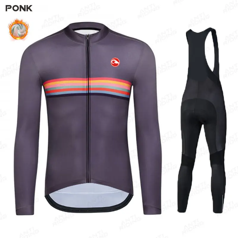 2020 Профессиональный велосипедный трикотажный зимний теплый флисовый комплект с длинным рукавом Ropa Ciclismo велосипедный Триатлон Ретро велосипедный комплект нечеткий