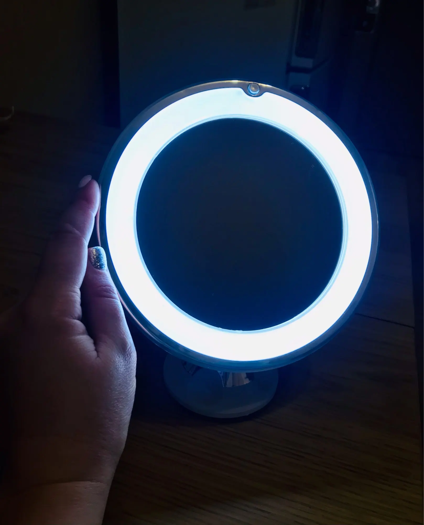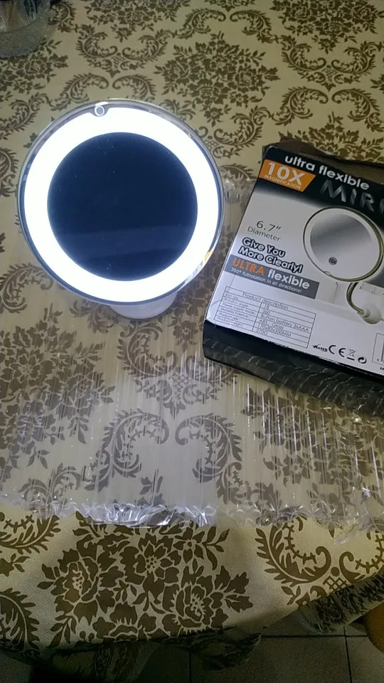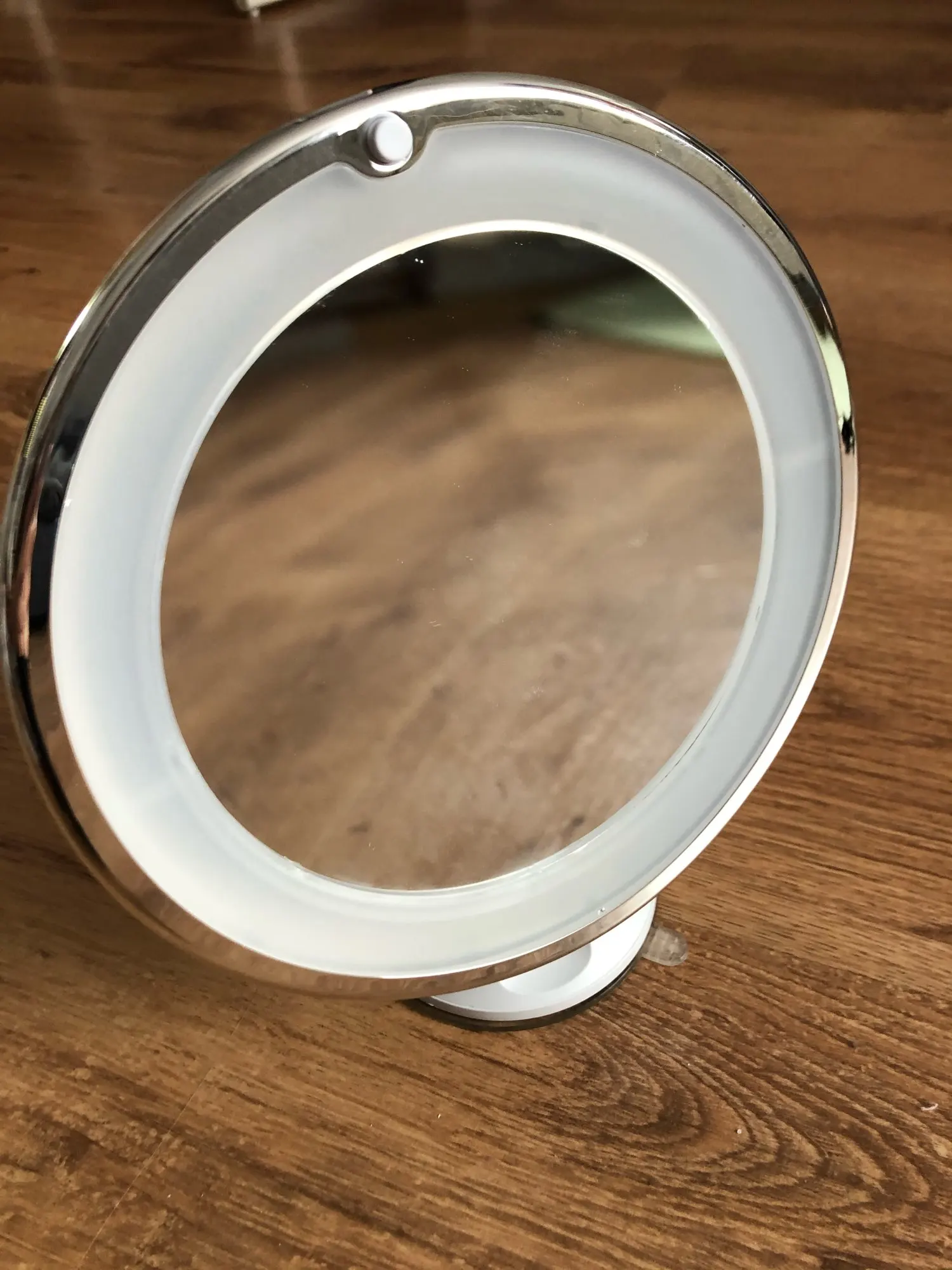 Светодиодная лампа не такая яркая, как обещано, и даже после полной зарядки ее освещение очень плохое. Зеркало само по себе не увеличительное, как описано, гораздо меньше, чем должно быть.