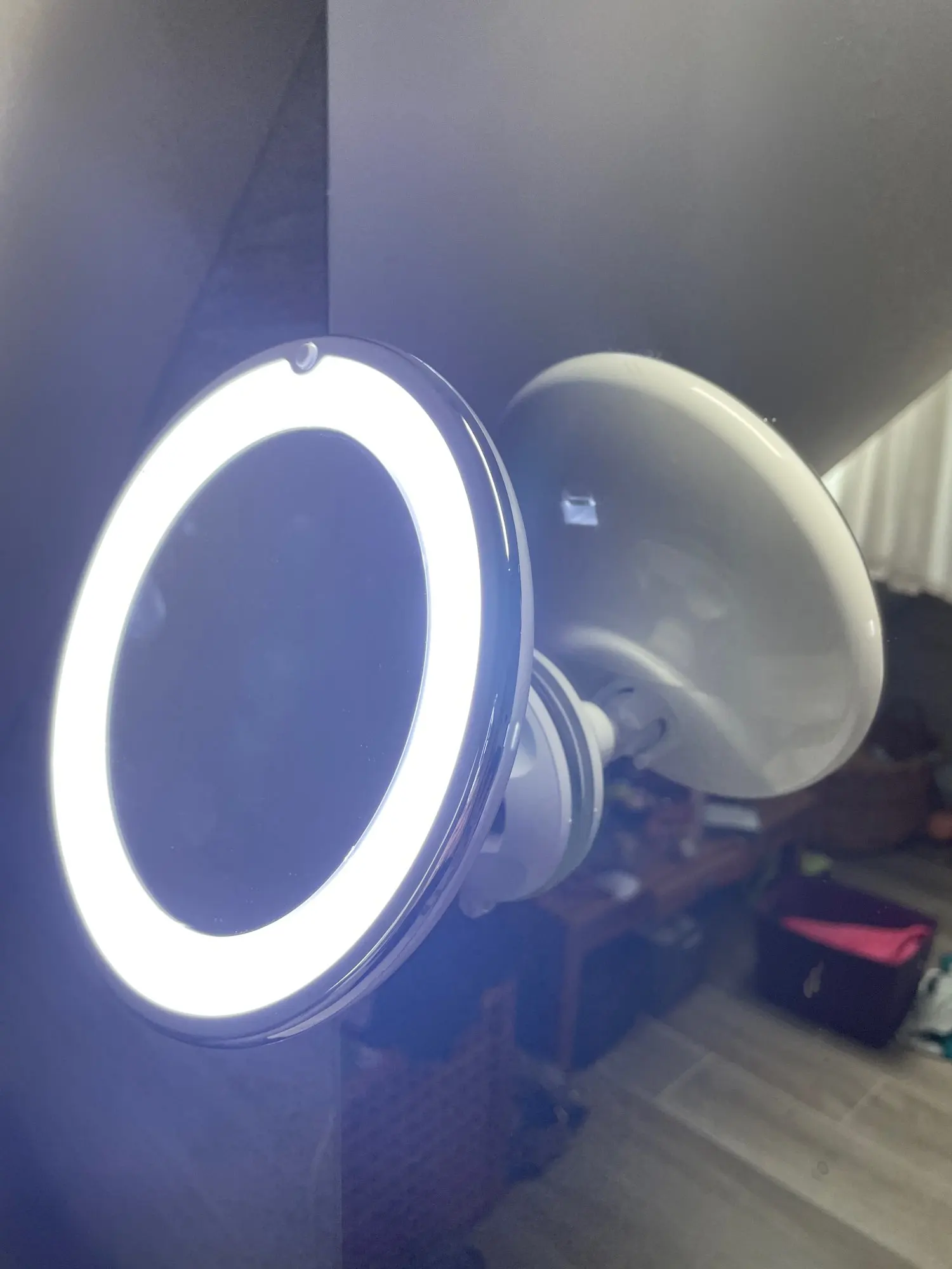 Присоска мощная. Мне не нравится свет, он не горит так сильно, как мне нравится РИА. В целом хорошо. Идеальная упаковка, очень защищенная и подарочная губка для макияжа. Спасибо.
