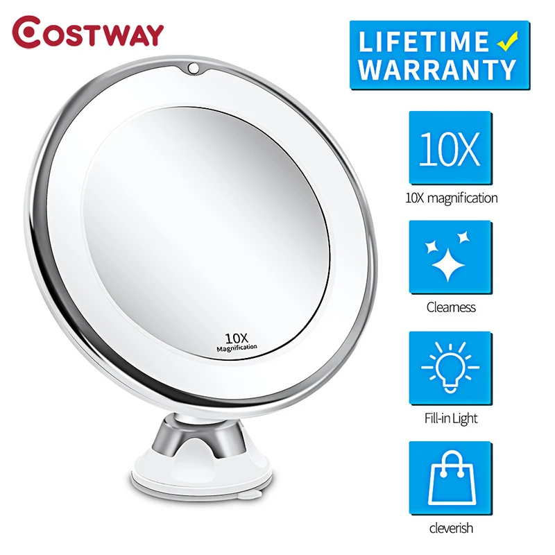Светодиодная косметическое зеркало с увеличением для макияжа COSTWAY с светильник кой, косметика, зеркала 10 крат, Прямая поставка и присоска