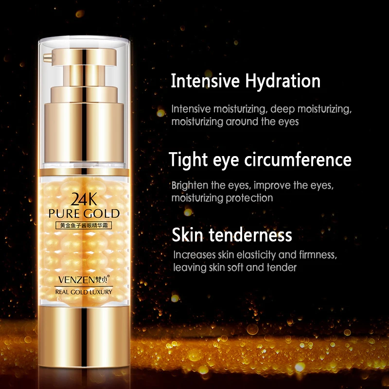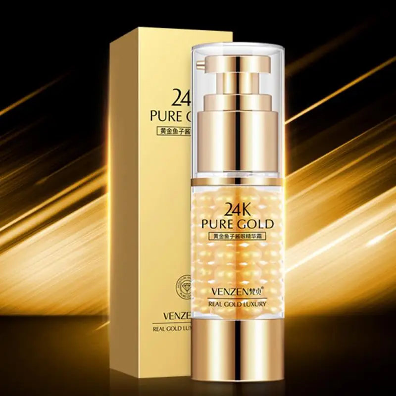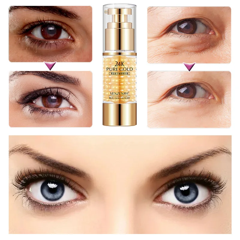 VENZEN с покрытыем цвета чистого 24 каратного золота глаза Икра Сыворотки жидкость для снятия! Убирает темные круги под глазами, для ухода за областью вокруг глаз против морщин анти-Возраст против отечности и сумки глаз уход за кожей