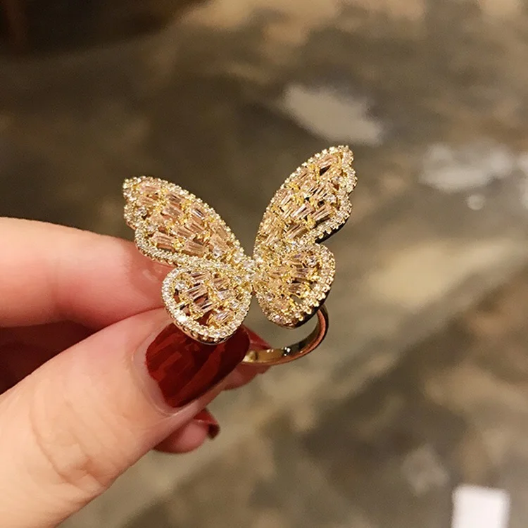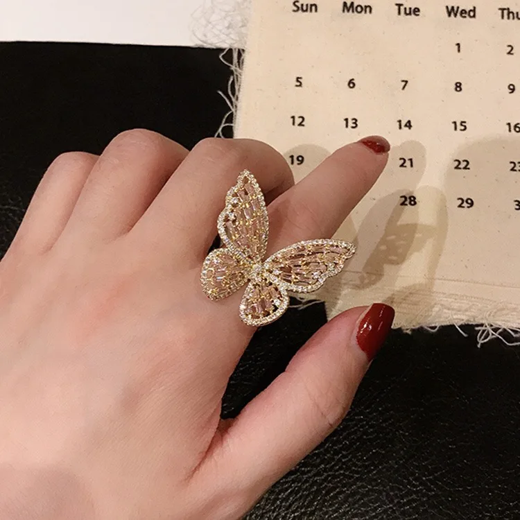 Женское коктейльное кольцо, Открытое кольцо с бабочкой из циркония,...