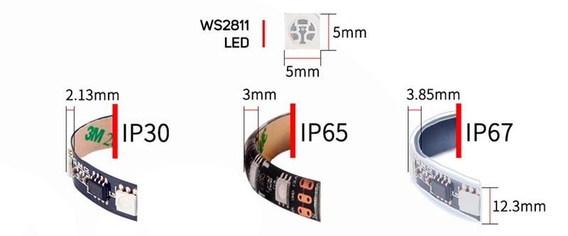 WS2811 должен использовать источник питания DC12V (нужно купить дополнительно) и светодиодный контроллер (нужно купить дополнительно) для управления!