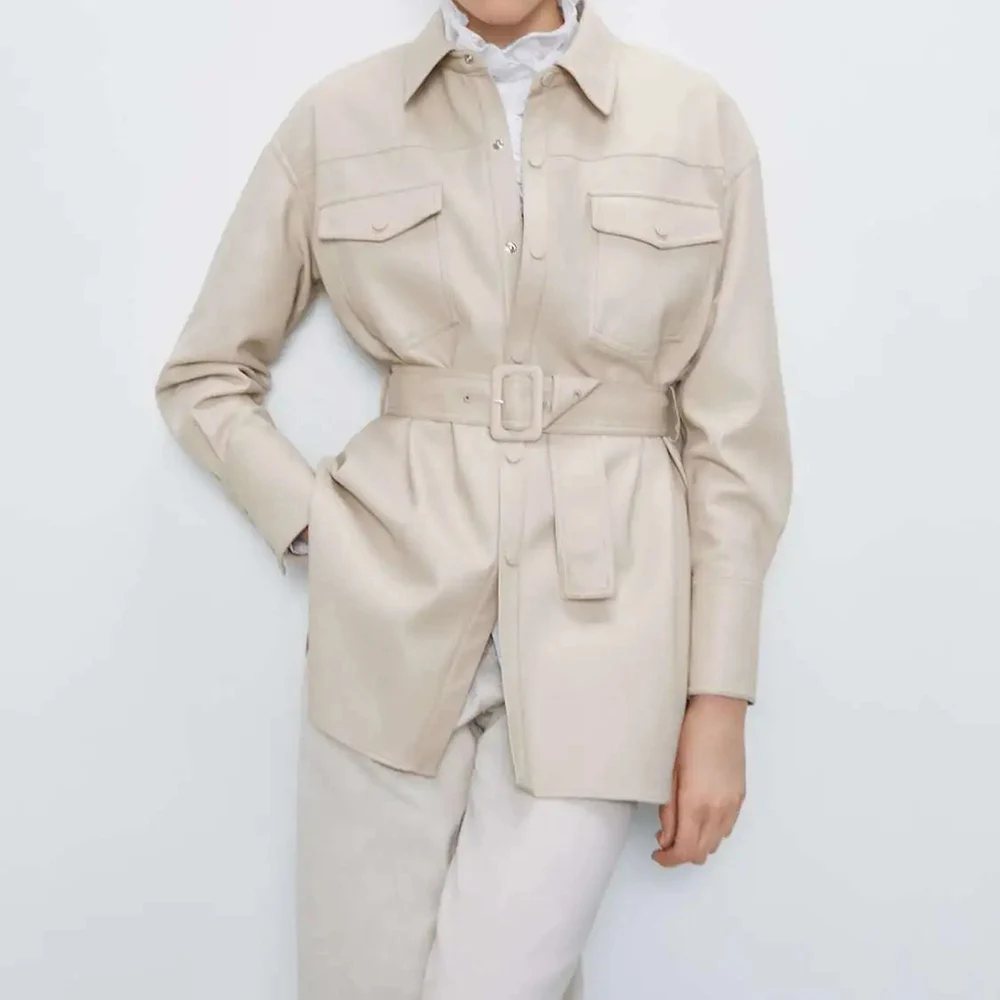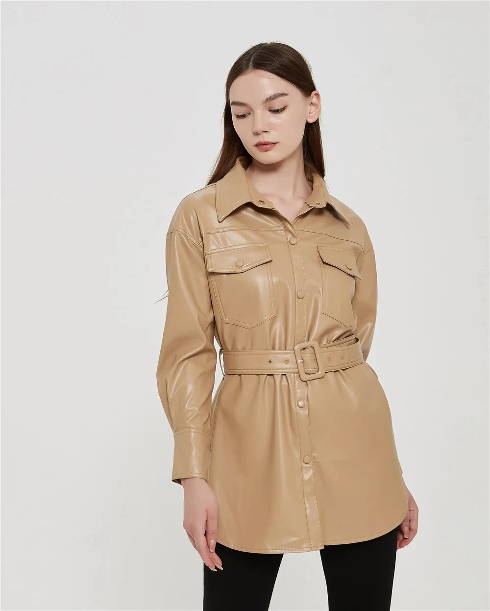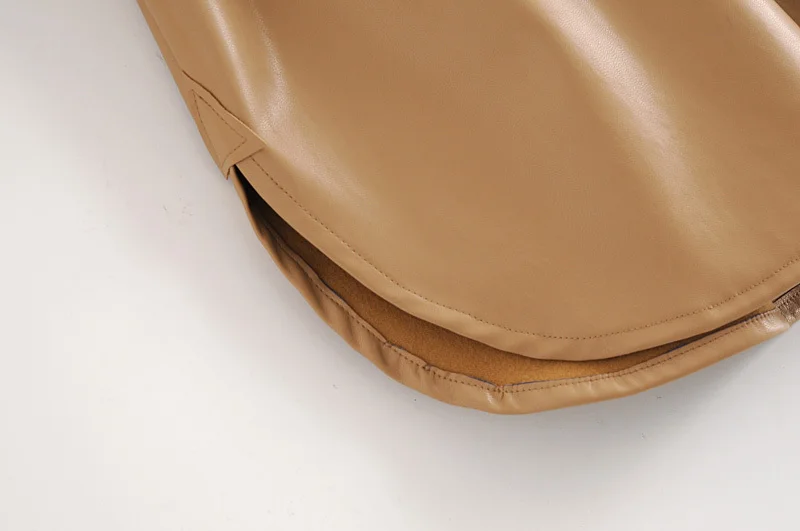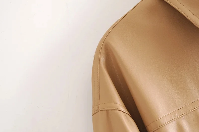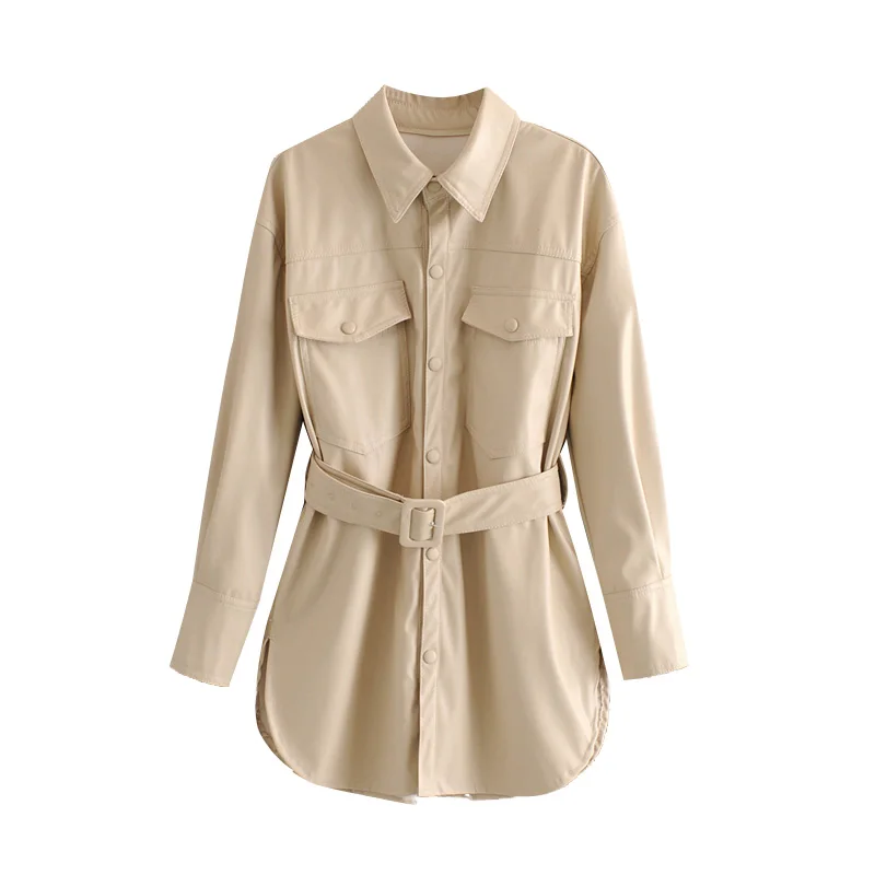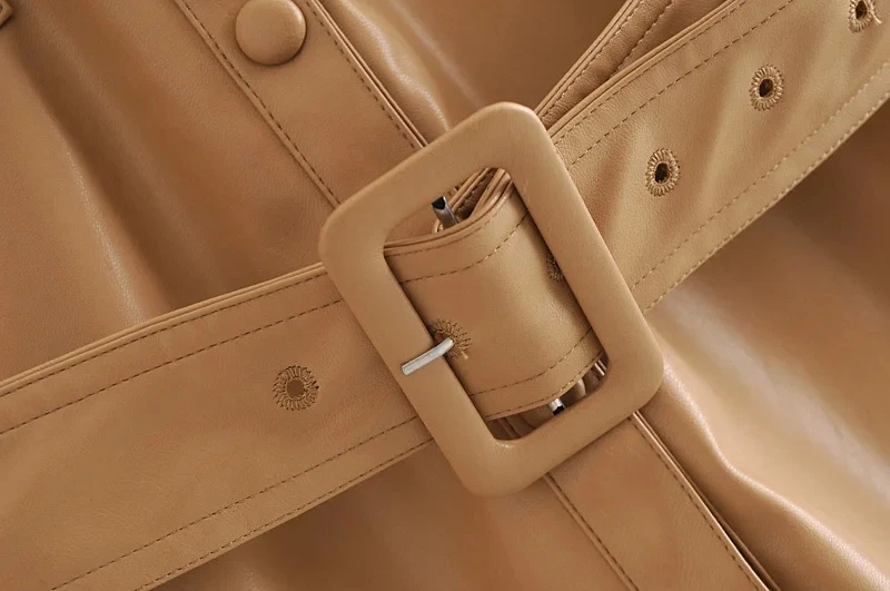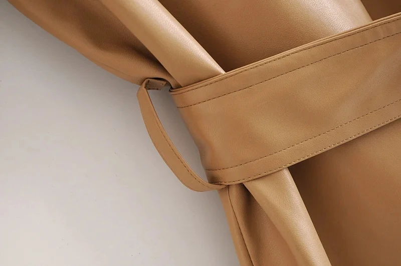 Xitimeao Женская мода 2021 искусственная кожа с поясом куртка пальто Винтажное с длинным рукавом боковые разрезы женская верхняя одежда шикарные топы