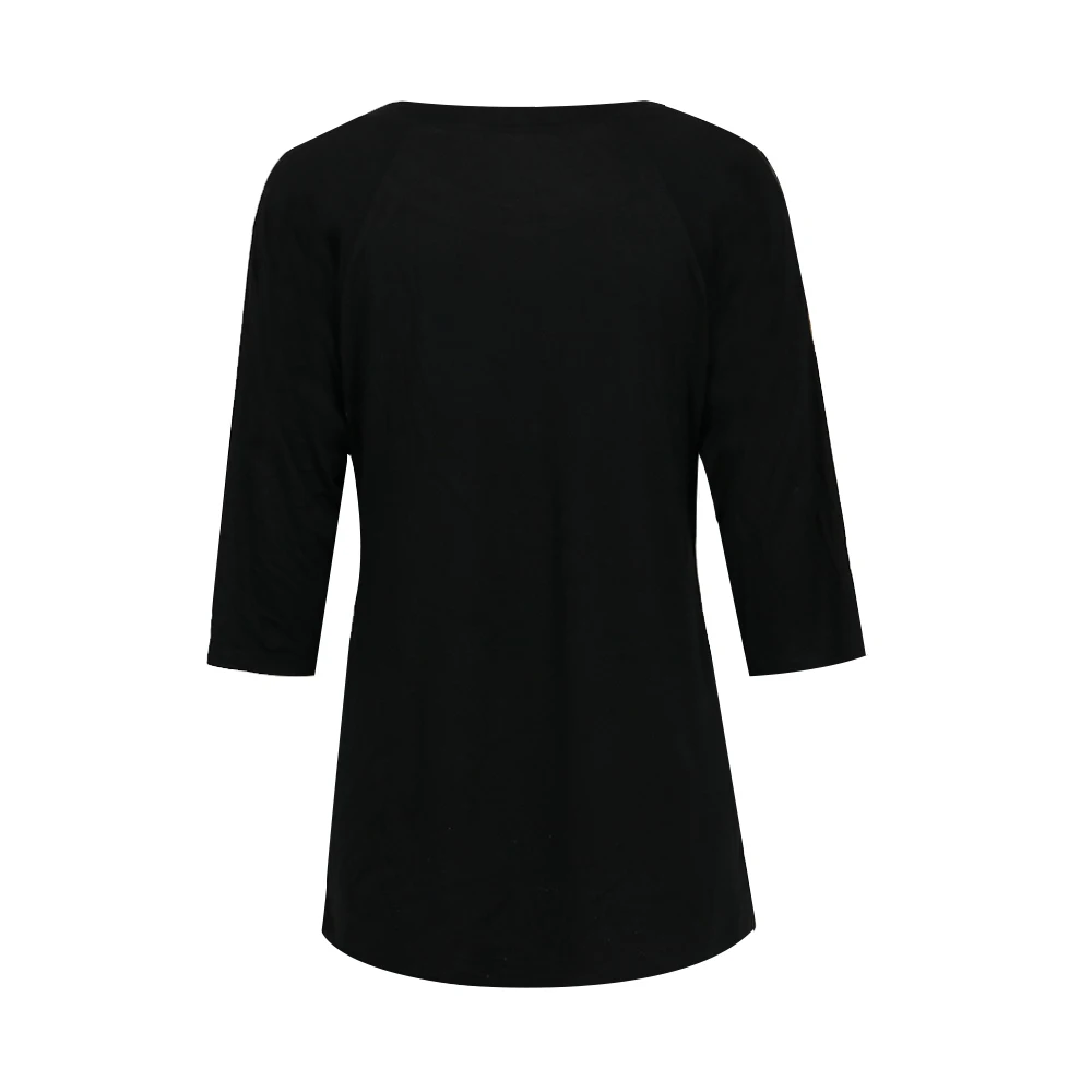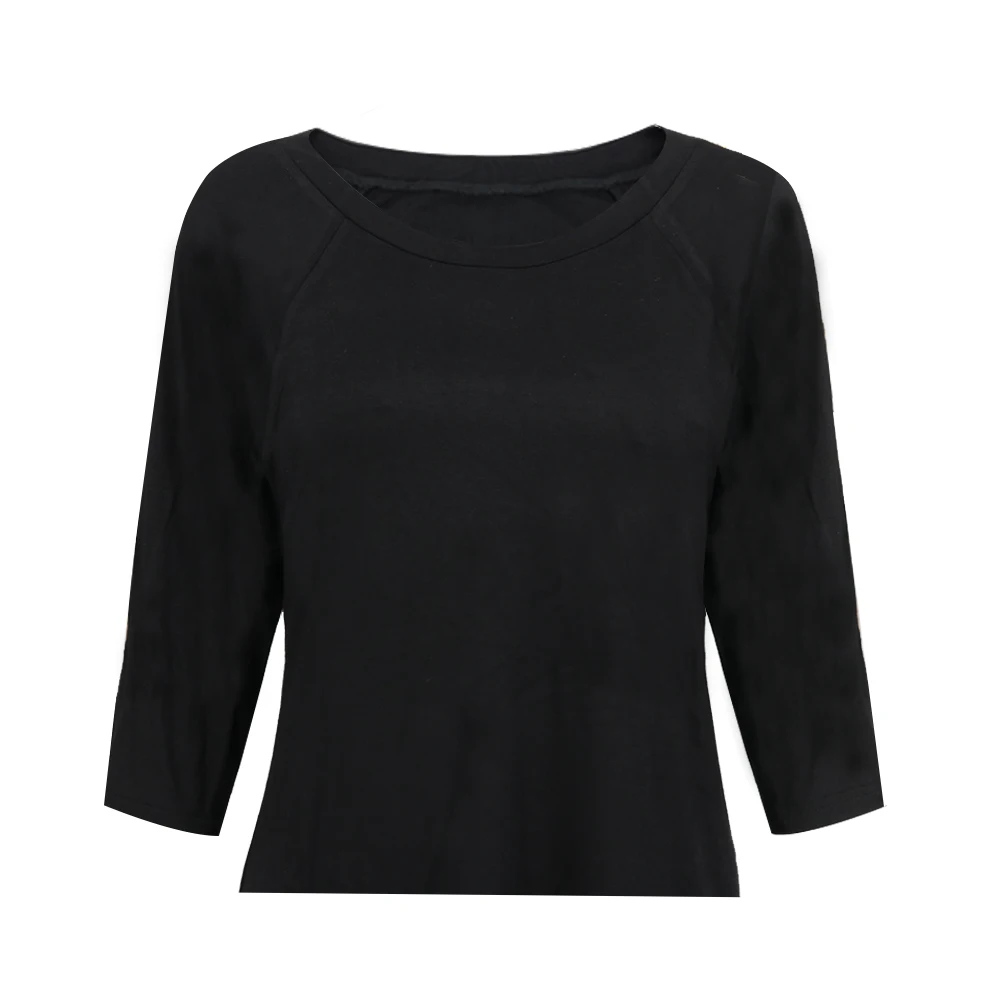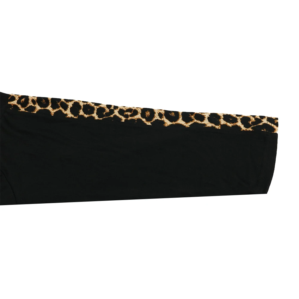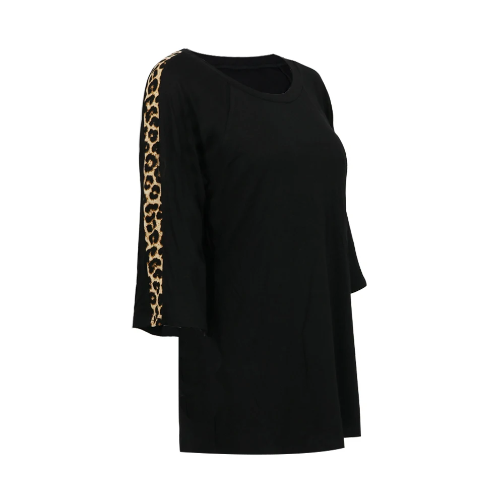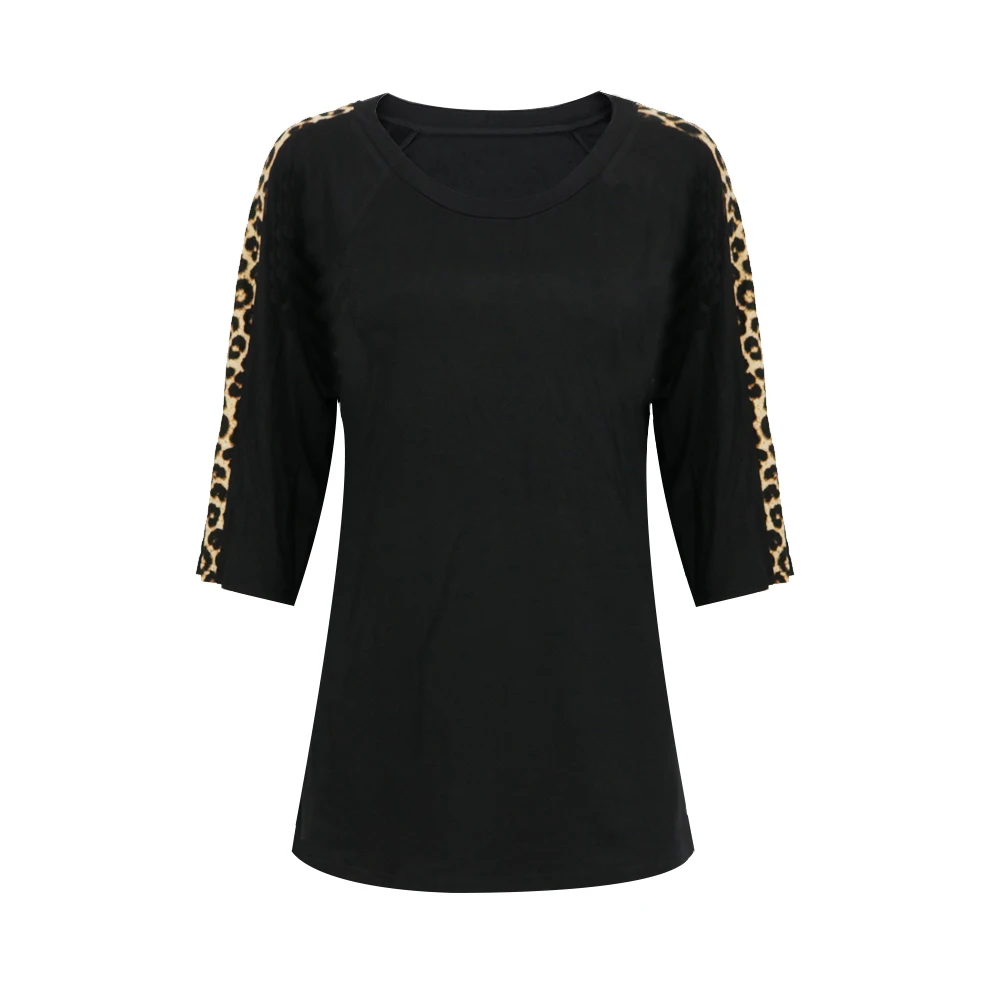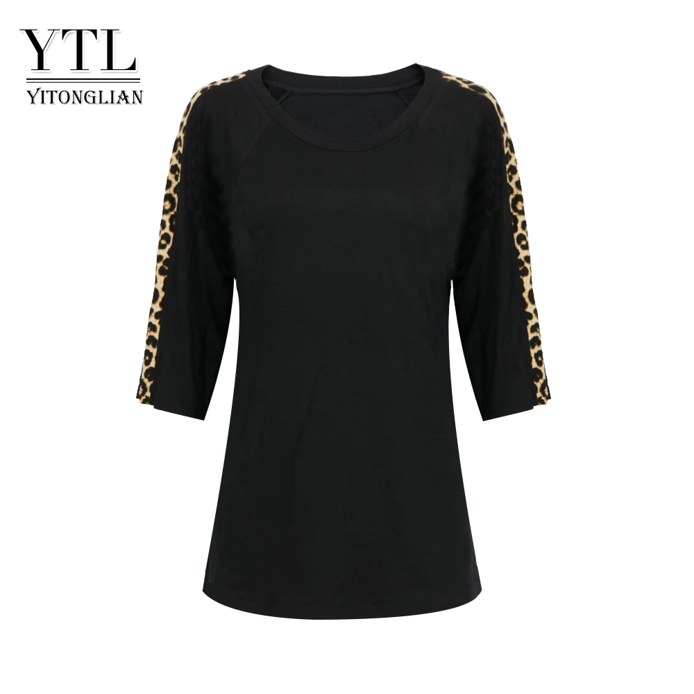 Yitonglian, Женская Модная хлопковая Футболка с рукавами 34, в стиле пэчворк, с леопардовым принтом, однотонная туника, с круглым вырезом, H408