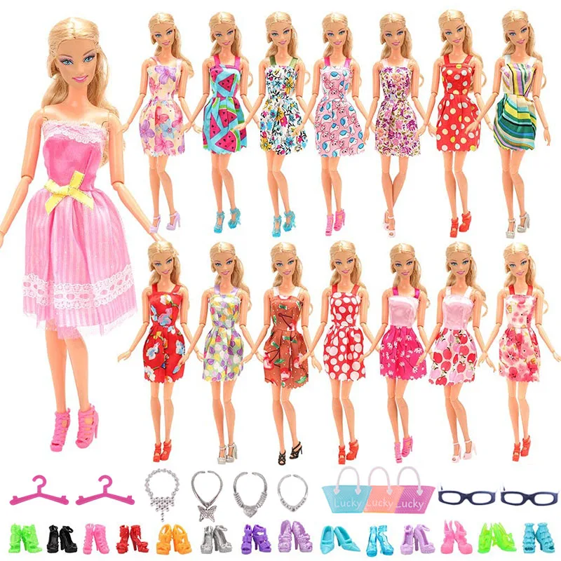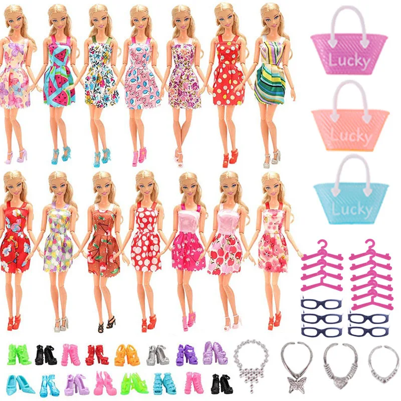 Аксессуары для кукол 40 шт.комплект, 10 платьев для кукол, 5 очков, 4 ожерелья, 1 сумка, 10 вешалков, 5 пар обуви для Барби