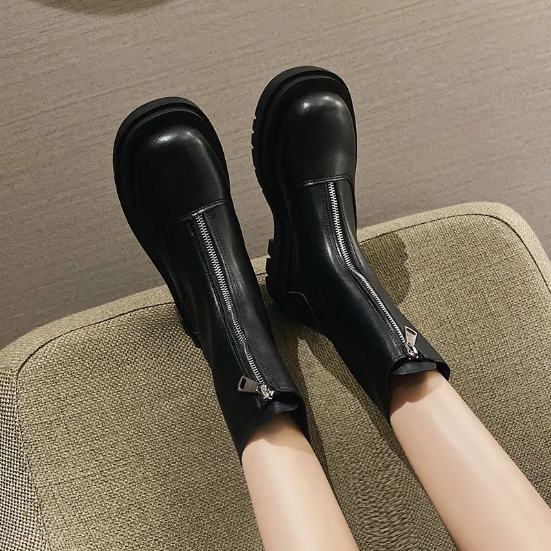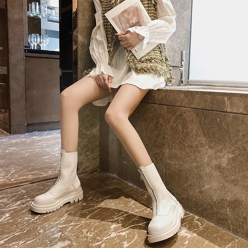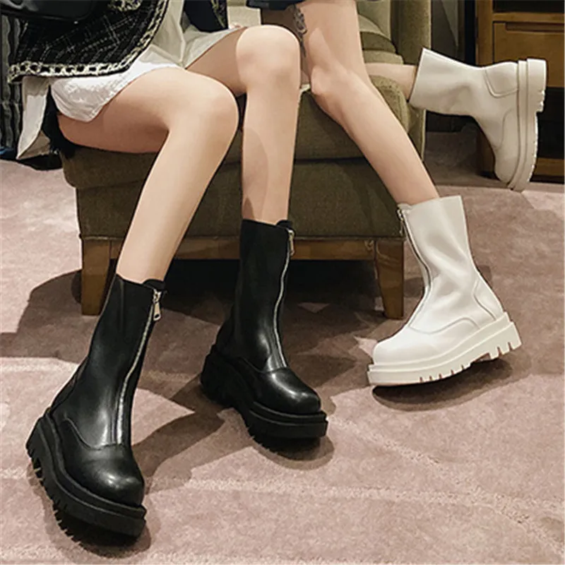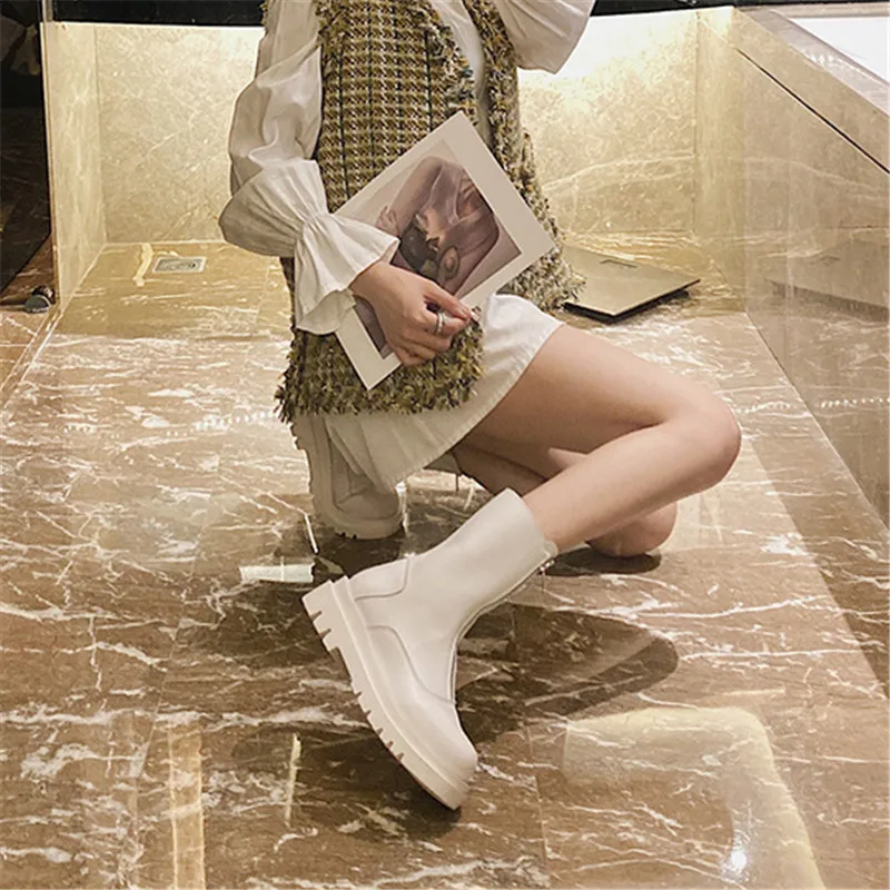 Модные женские Ботинки Martin с круглым носком на среднем каблуке, женские осенние ботинки из искусственной кожи на квадратном каблуке, обувь на платформе botas de mujer