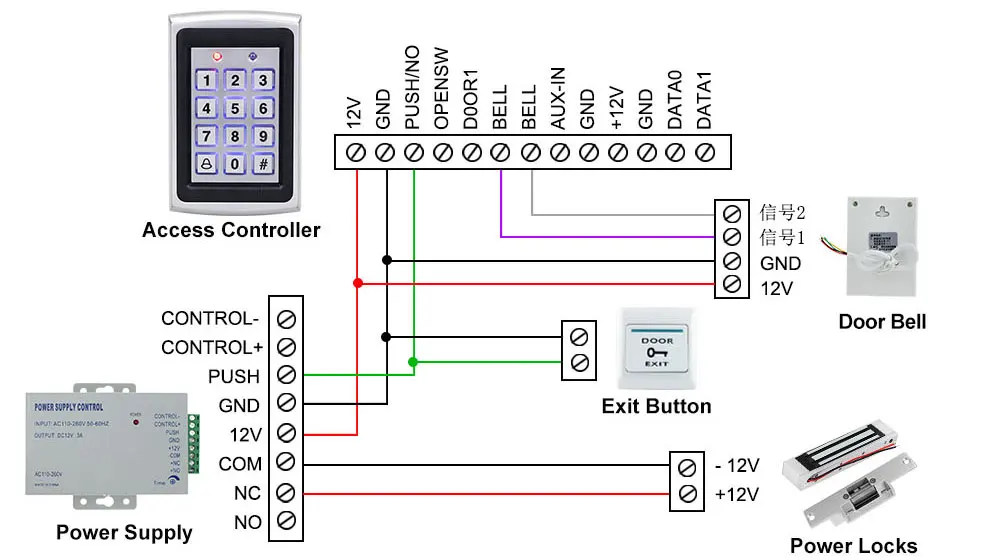 Эта клавиатура управления доступом не требует подключения к компьютеру. Вы просто подключите его к источнику питания DC12V, электрическому замку, кнопке выхода. Тогда хорошо. Блок питания и электрический замок, кнопка выхода, дверной звонок не включены в посылка, если вам это нужно, пожалуйста, свяжитесь с нами. Спасибо!